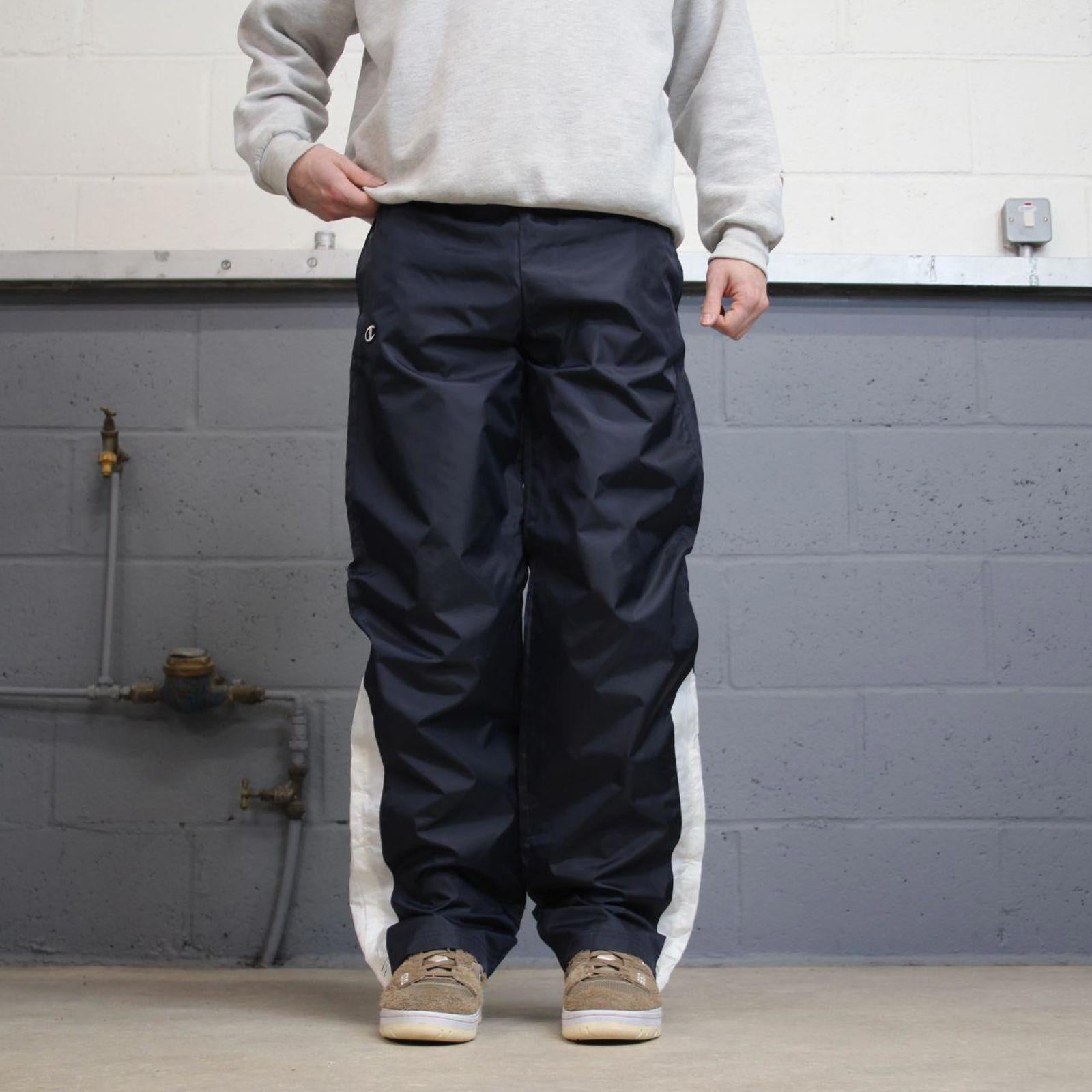 Navy Champion trackies Small loose y2k floaty leg joggers embroidered logo