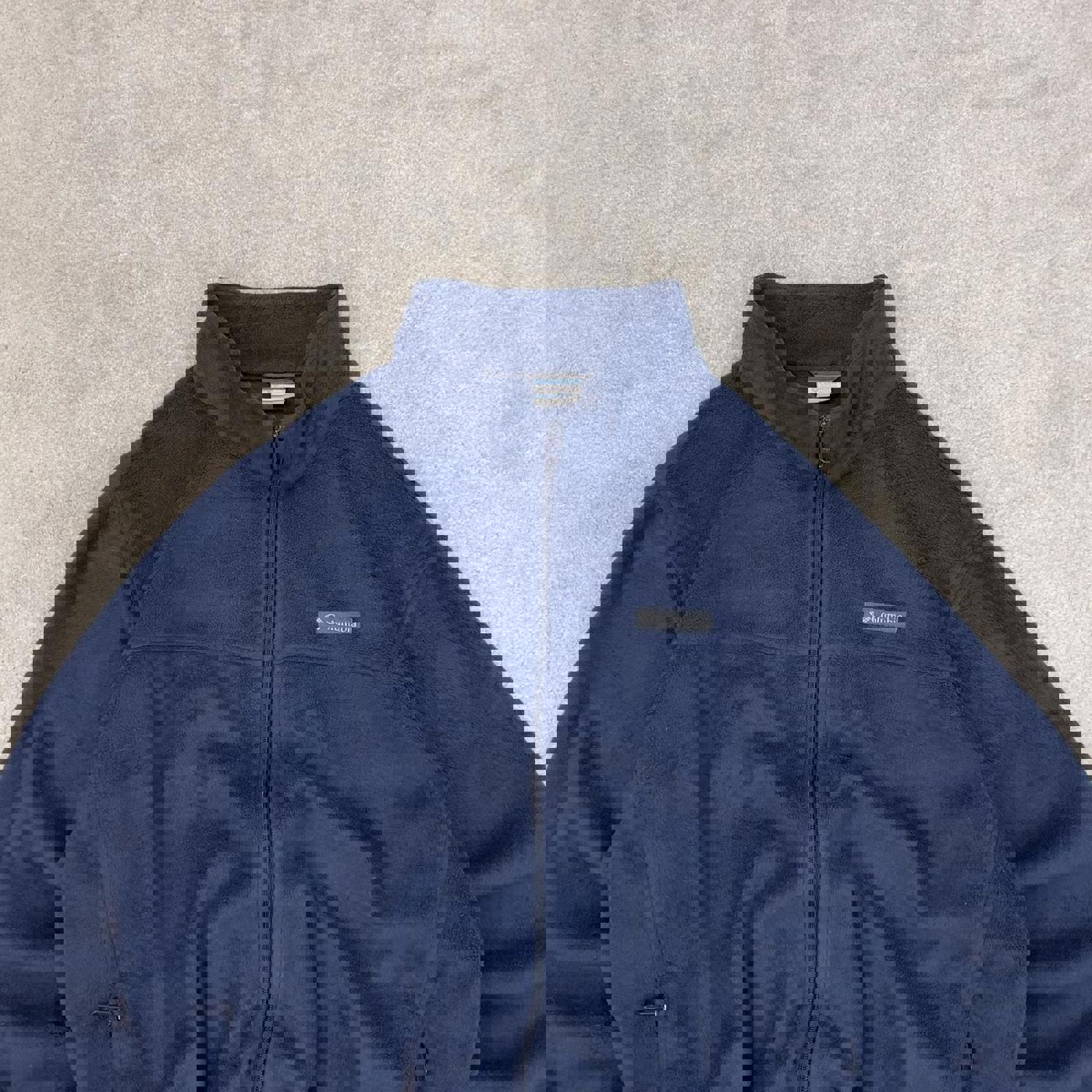 Navy Blue Columbia Sportswear full zip technical fleece with embroidered logo and zip pockets