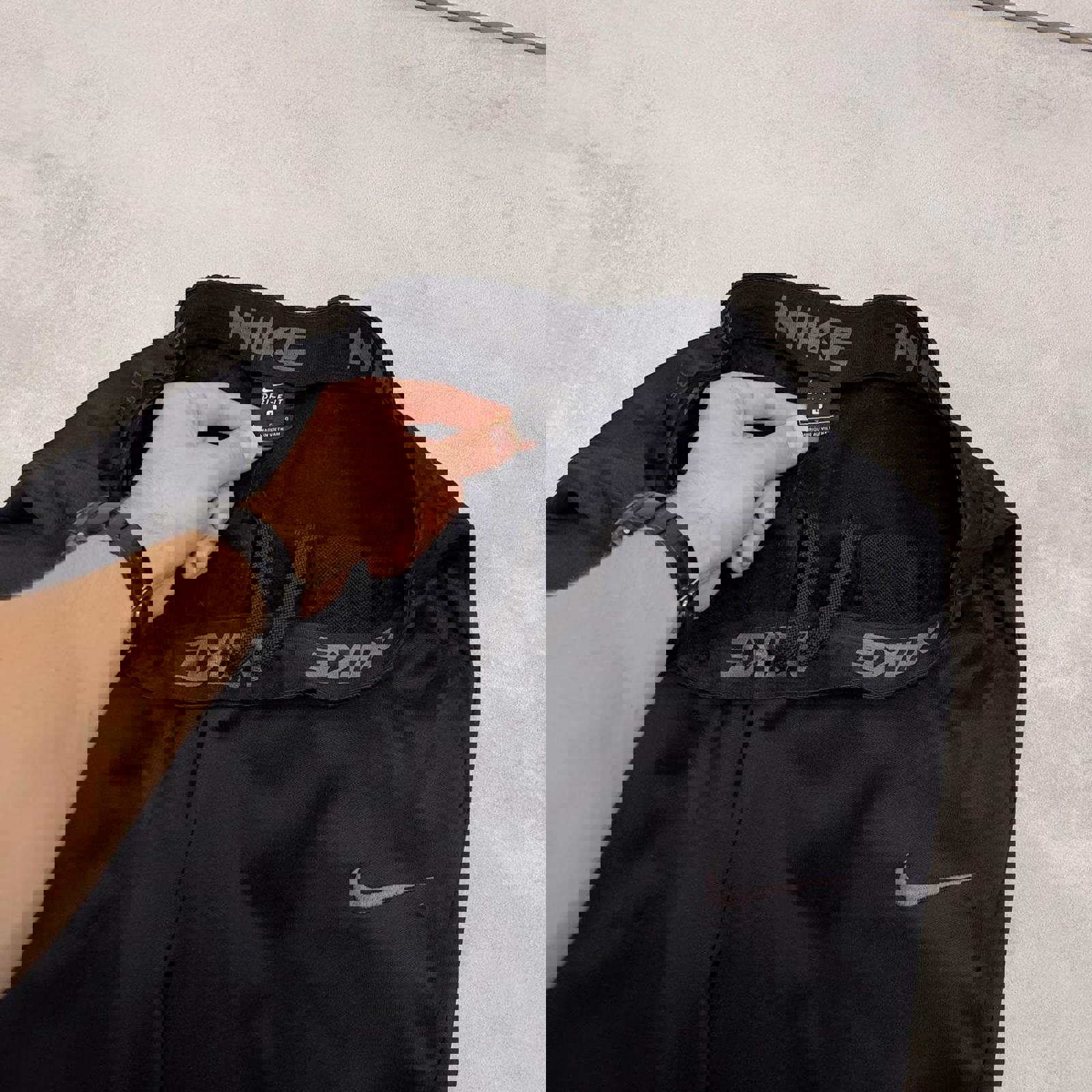 Black Nike track Dr-Fit pants with drawstring waist, pockets and embroidered Swoosh logo