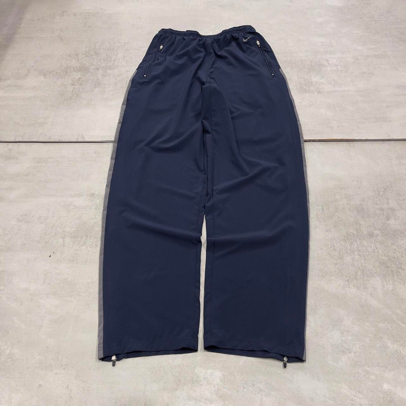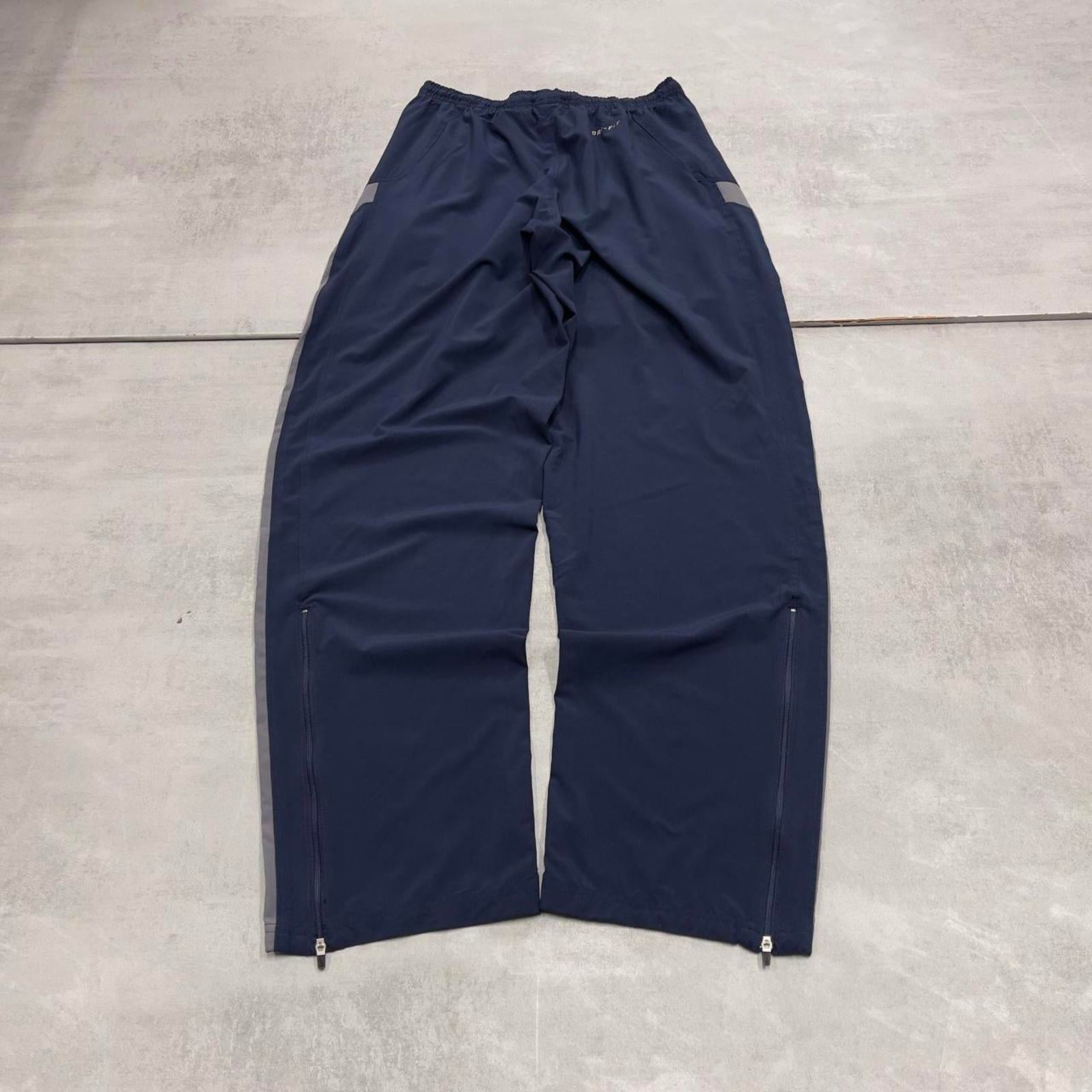 Nike Trackies S navy y2k 00s style dri-fit joggers print logo zip ankles