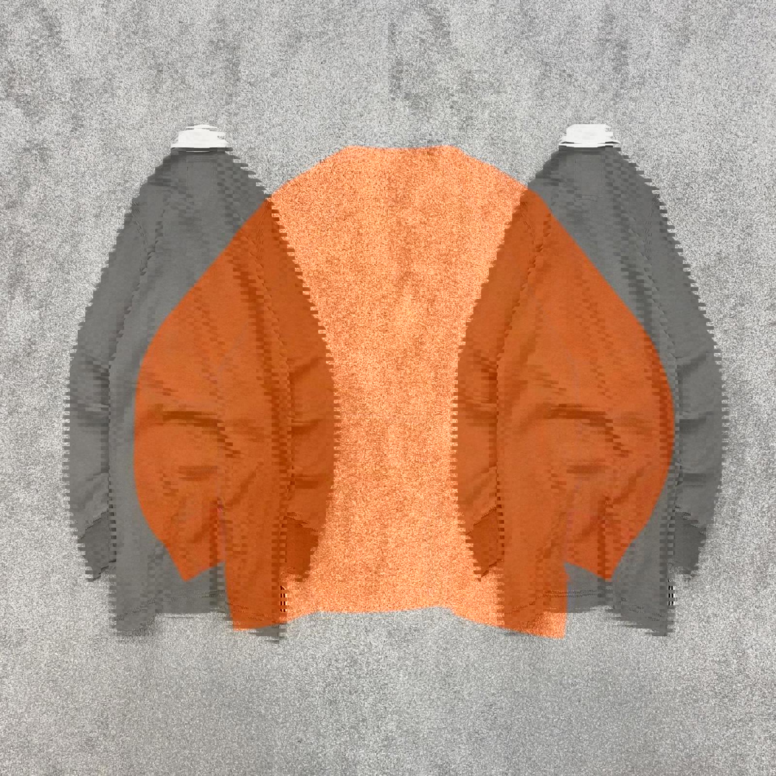 Bold orange colour and white collar. Features a loose fit, soft heavyweight cotton, and traditional button-up neckline. Perfect for layering or styling solo for a retro sporty vibe.