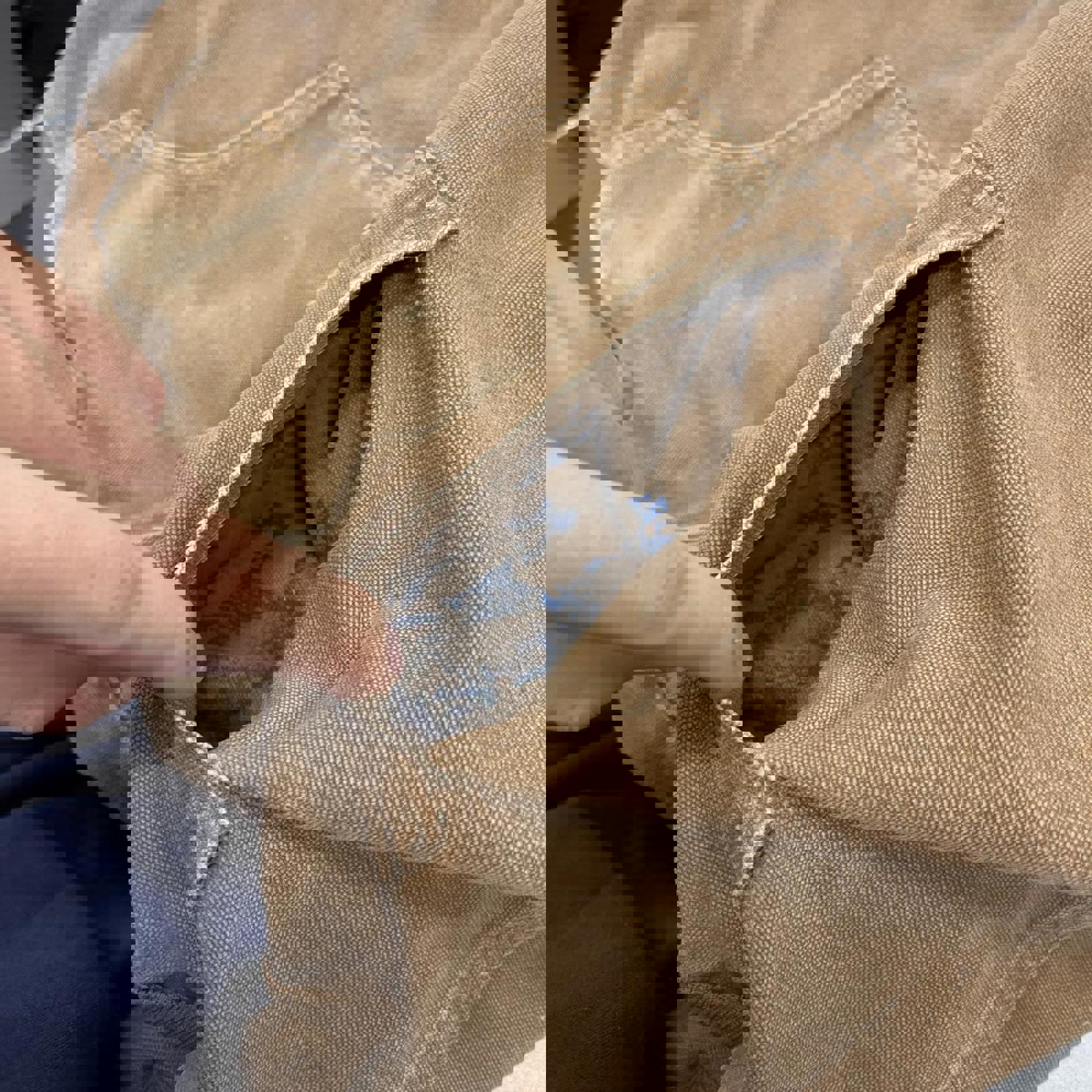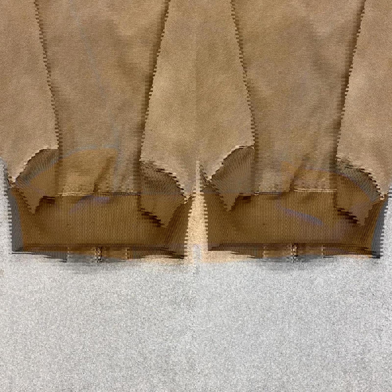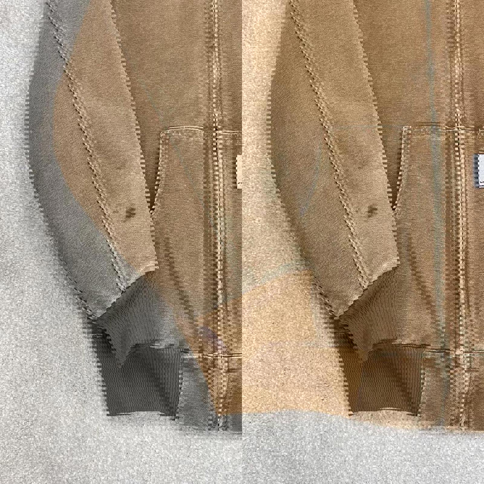 Faded tan brown workwear jacket with flannel quilt lining
