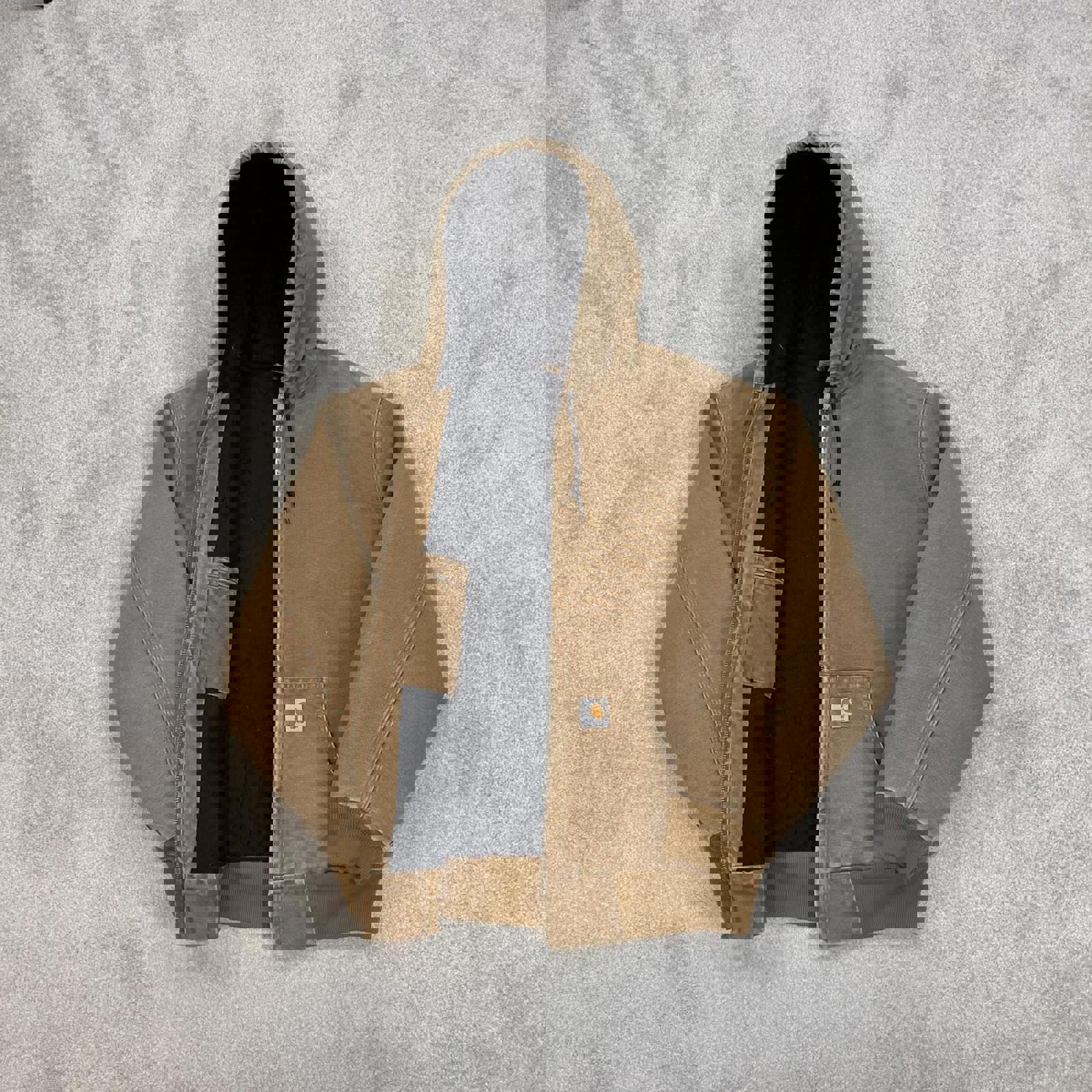 Sand brown Women's Carhartt hooded active jacket Large canvas work coat