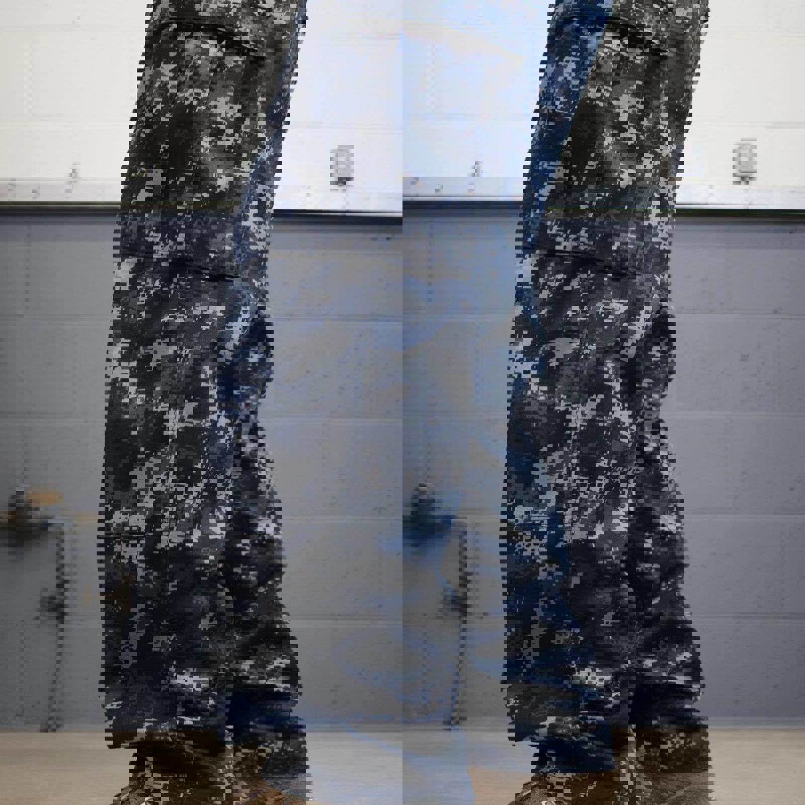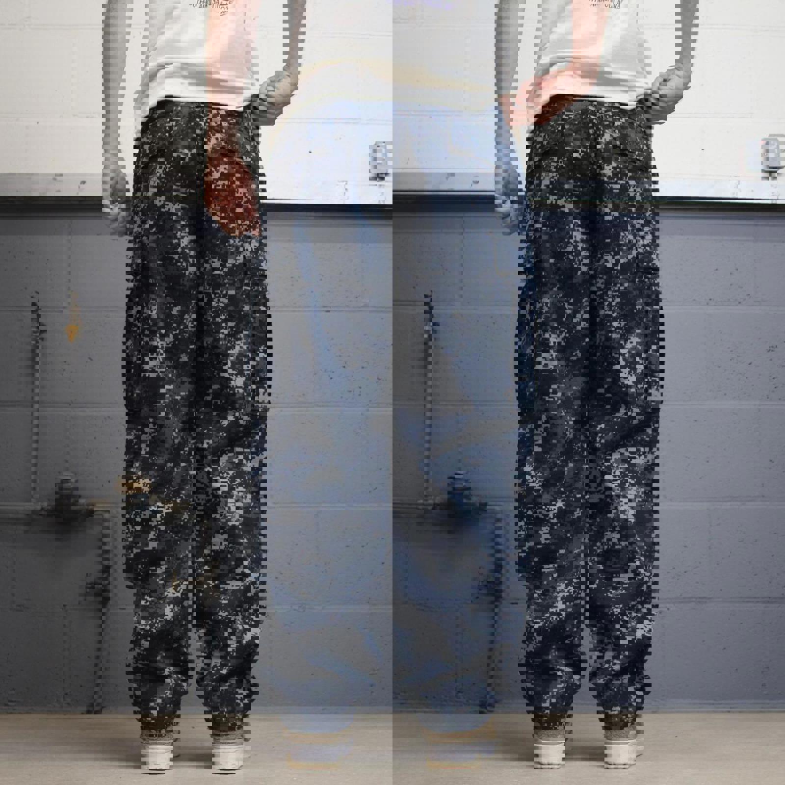 US Navy cargo pants W32L31 baggy blue USN digital camouflage trousers double knee pleated