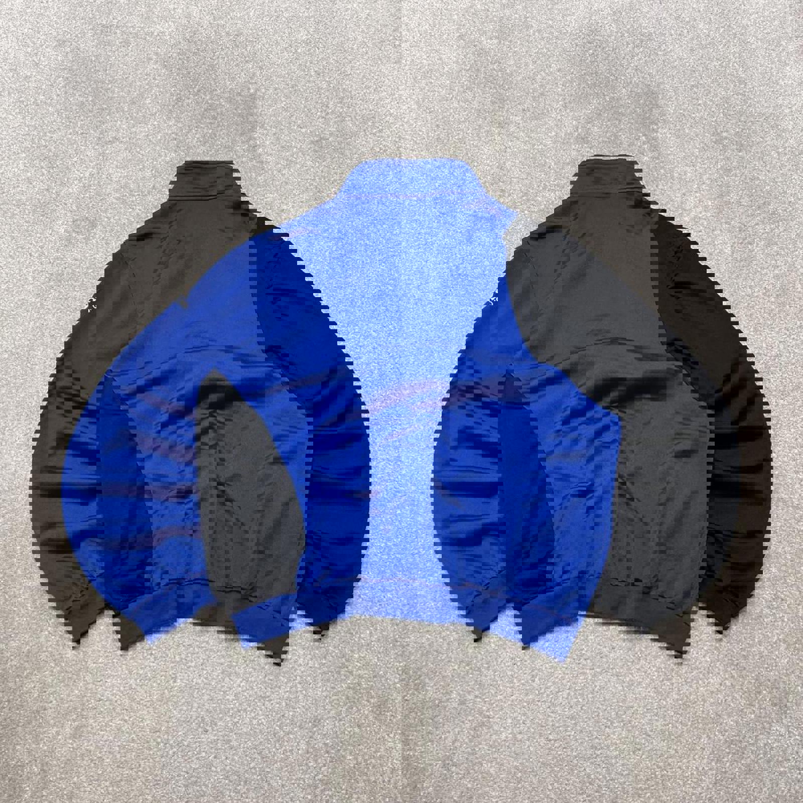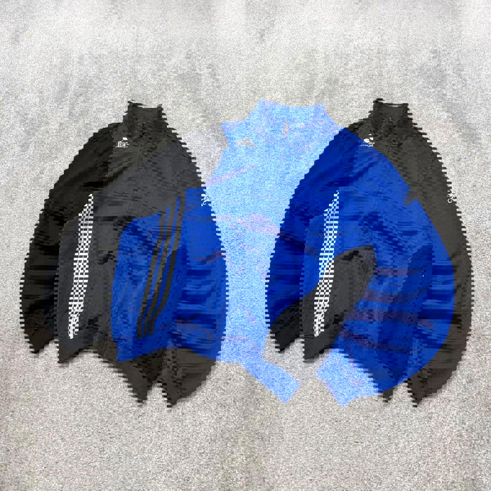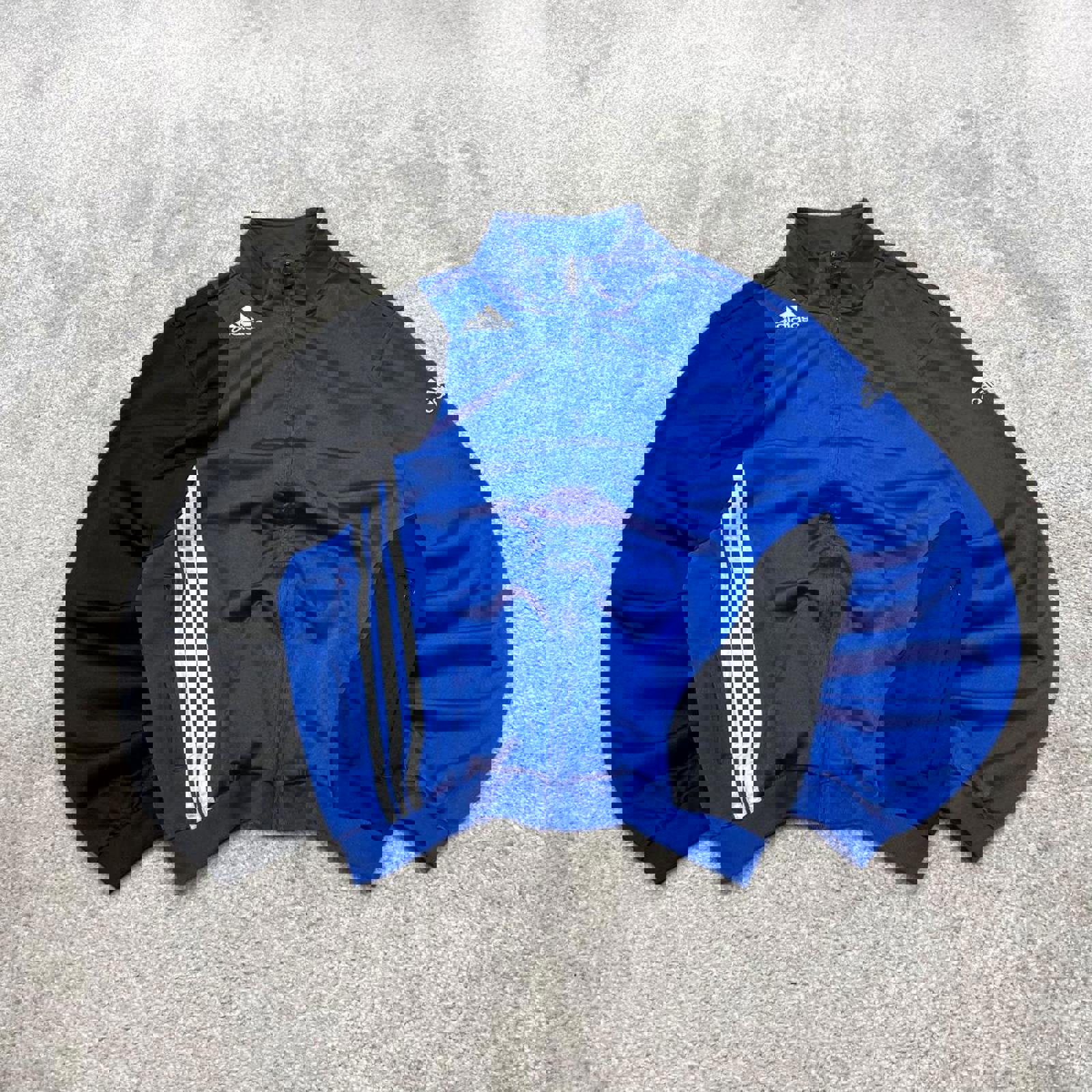 Blue, black and white Adidas track jacket with embroidered logos and stripe detailing