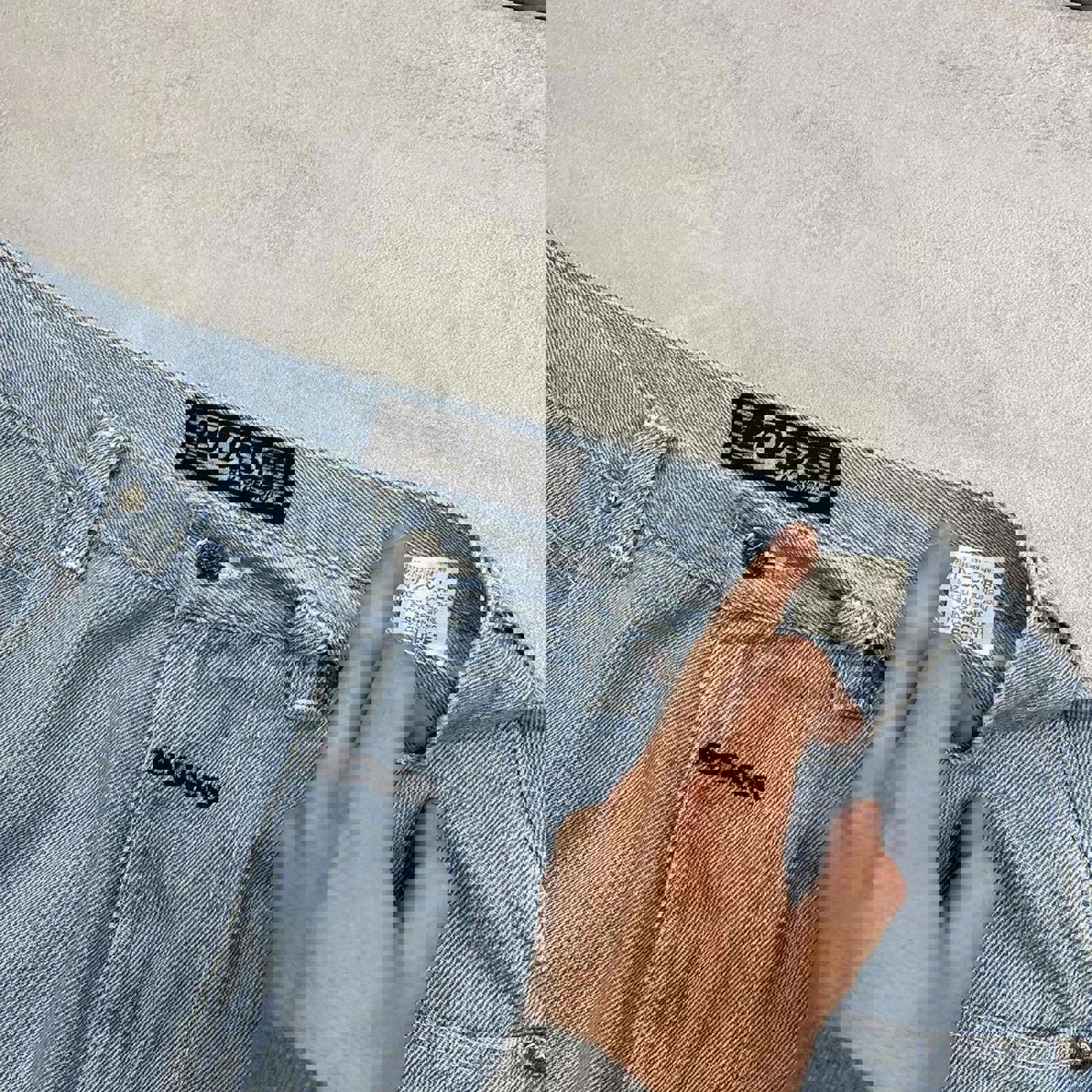 Good condition overall with some slight yellow and pink marks throughout the denim