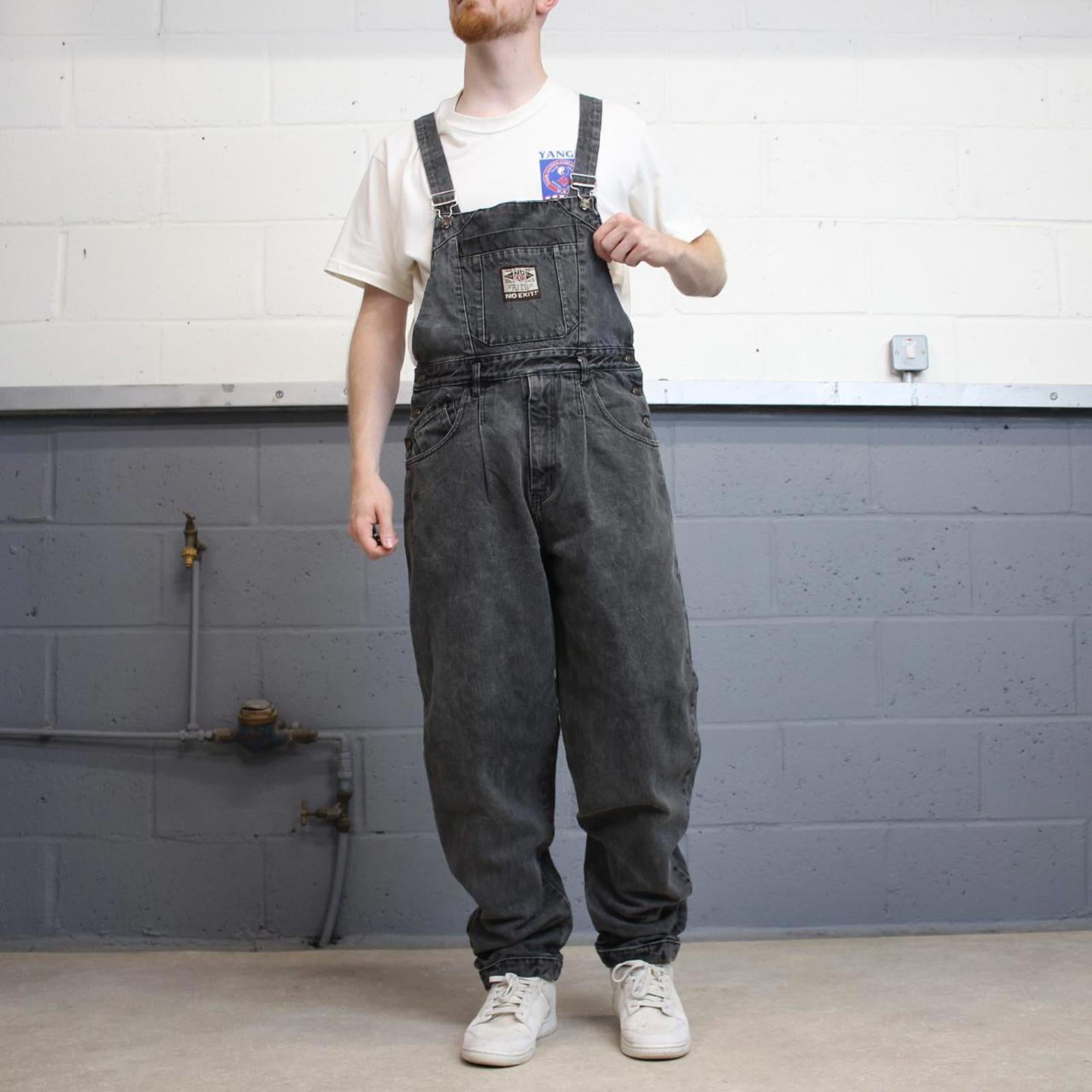 Vintage baggy No Exit dungarees W32L32 black mens denim overalls