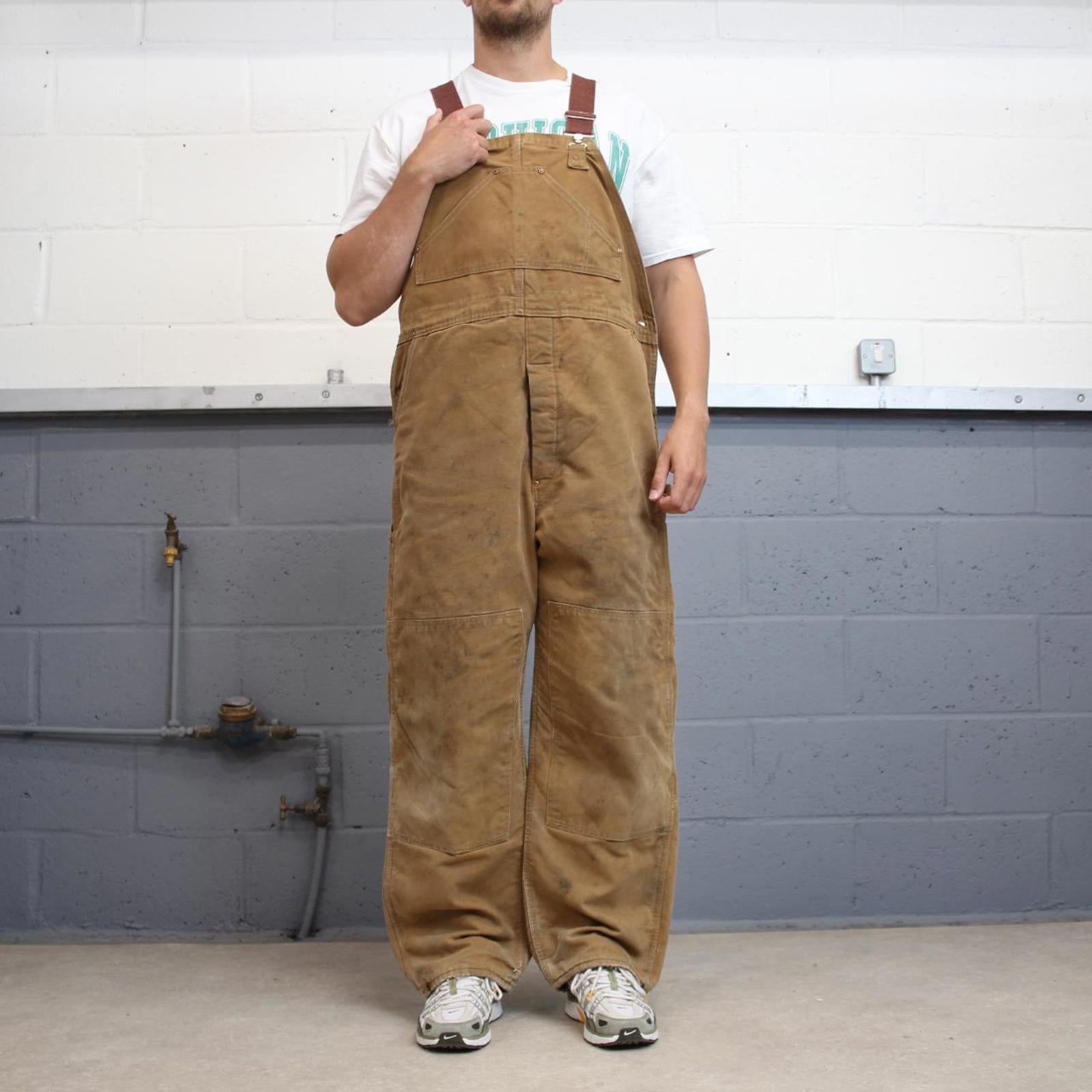 Vintage Carhartt dungarees W44L30 mens canvas overalls tan utility worker