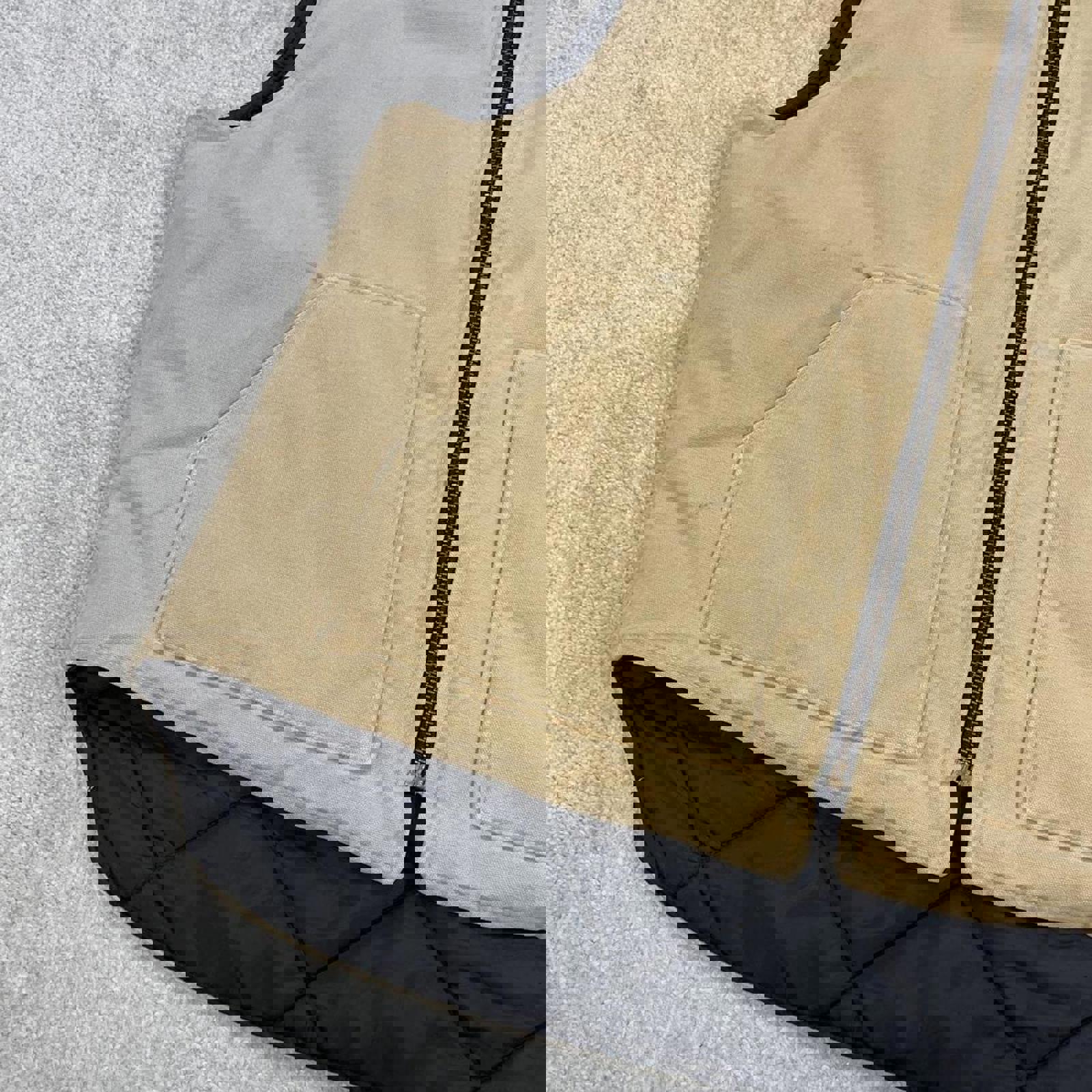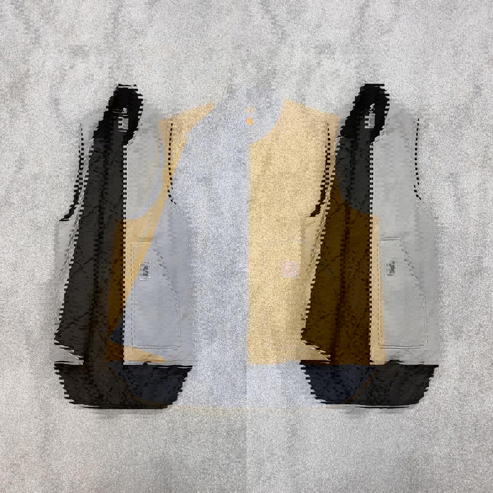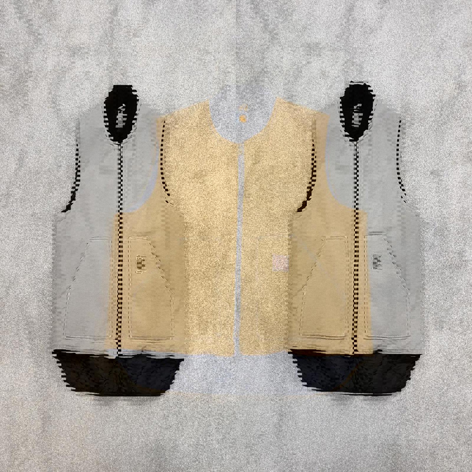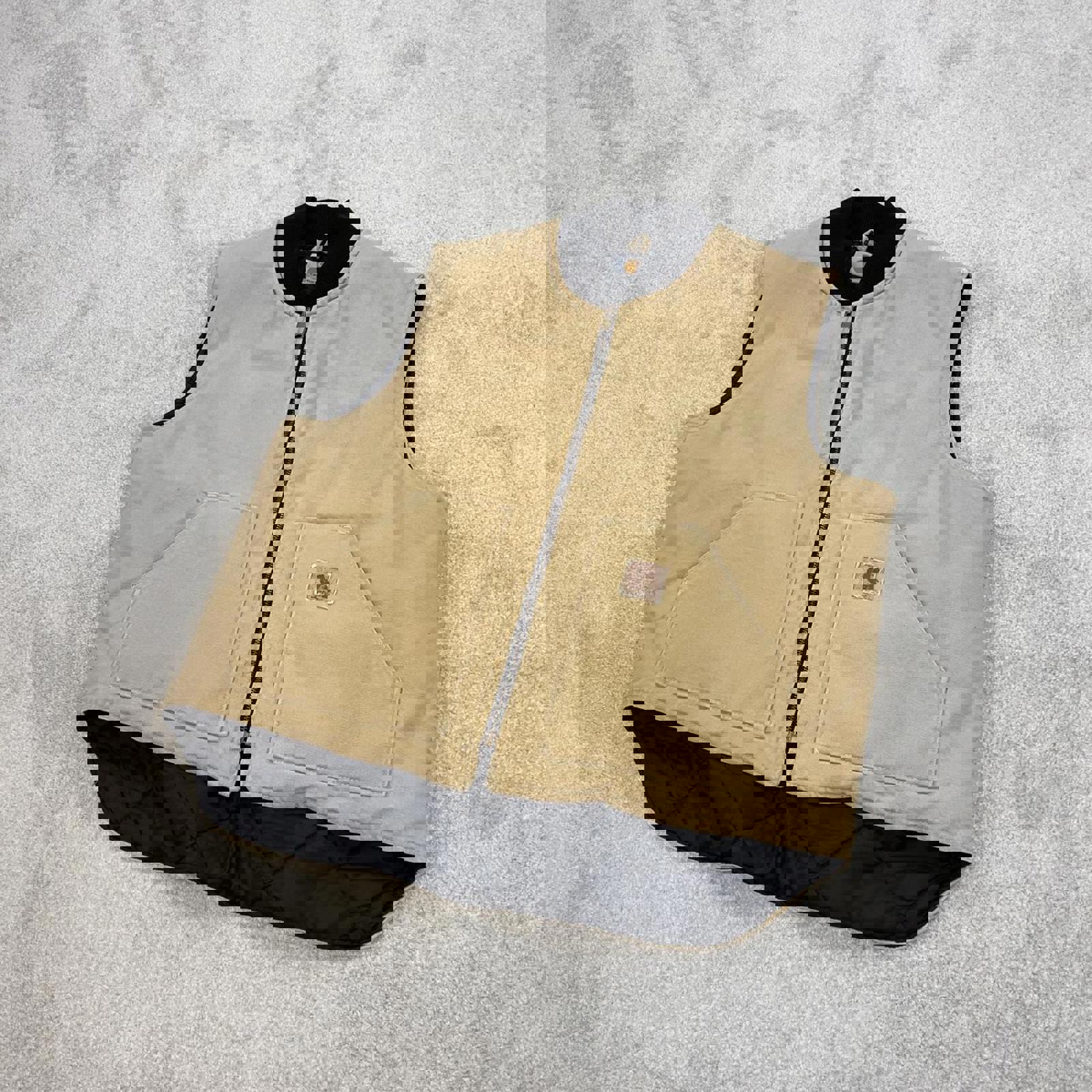 Authentic Carhartt body warmer with faded leather patch logo