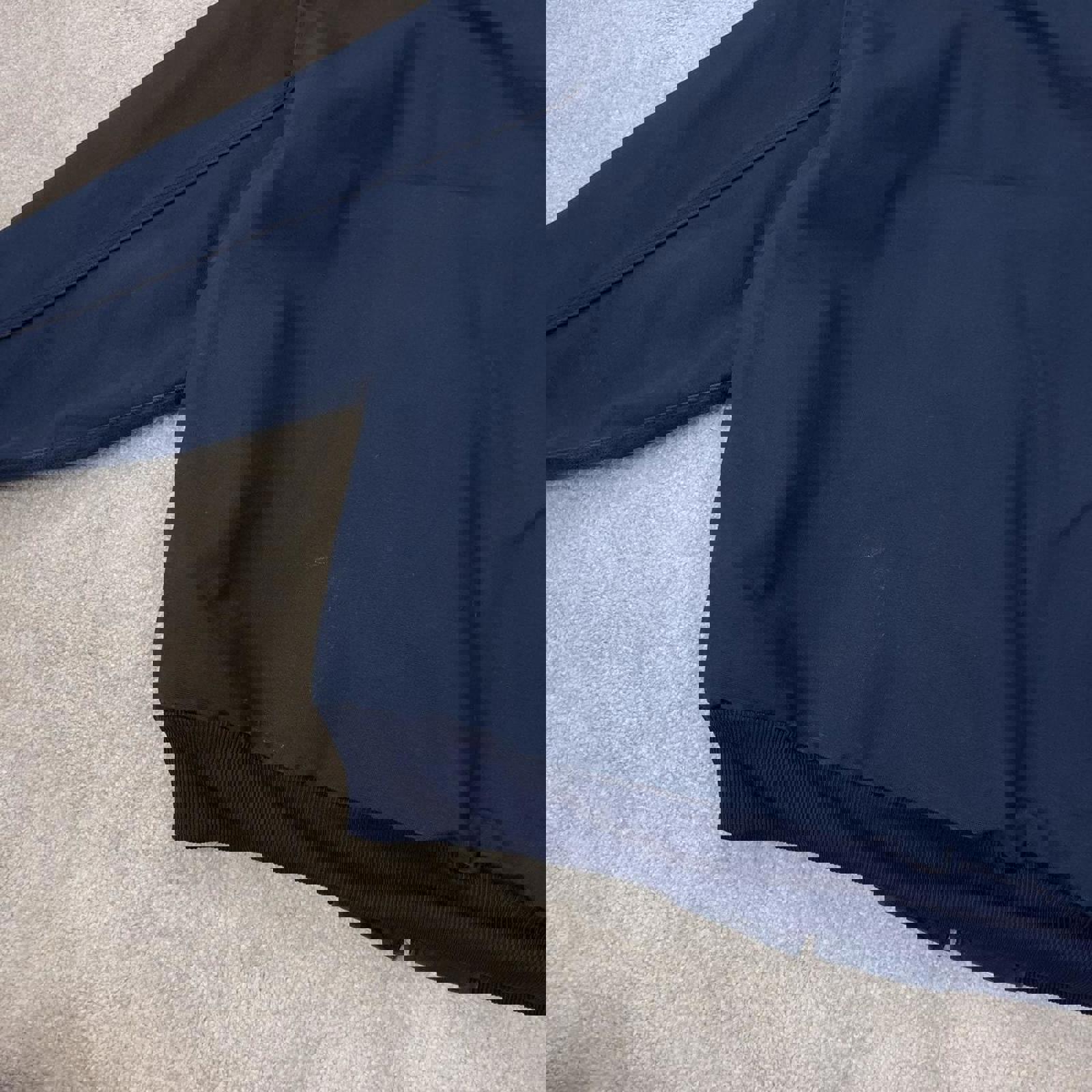 Faded navy canvas workwear jacket with thermal mesh lining