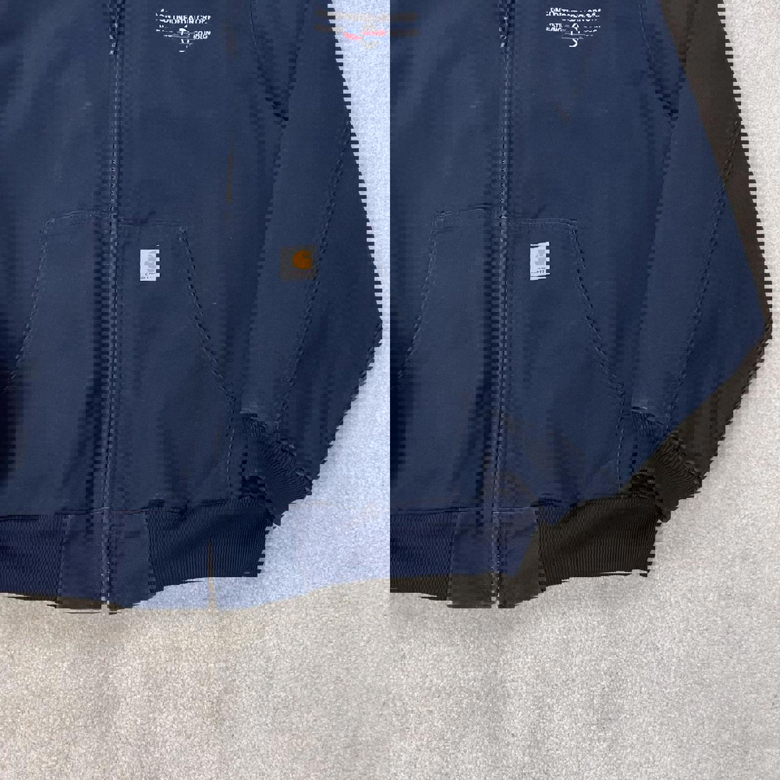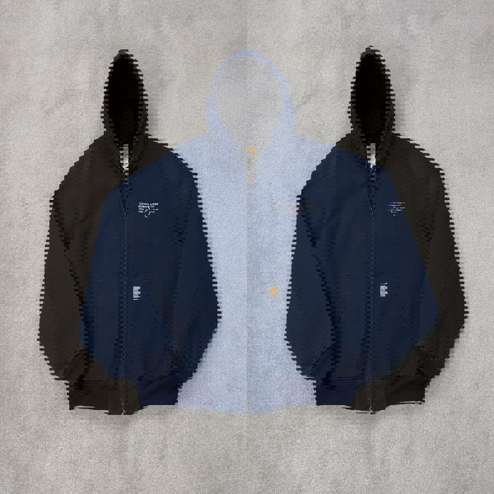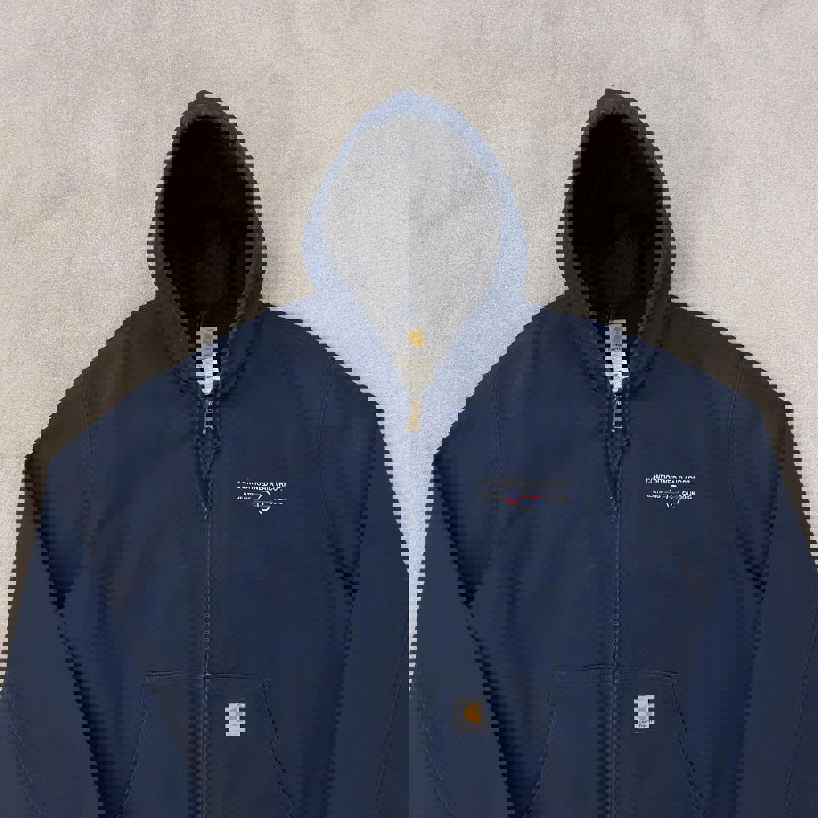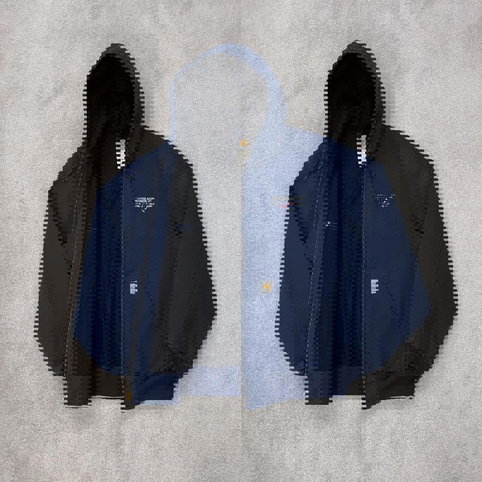 J131 NVY 2004 authentic Carhartt active jacket with white patch logo and company embroidery