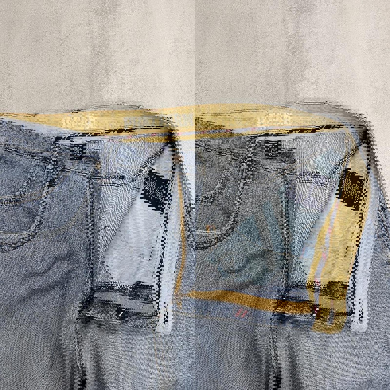 Faded blue Phat Farm jeans with waist patch and nice designs/ details