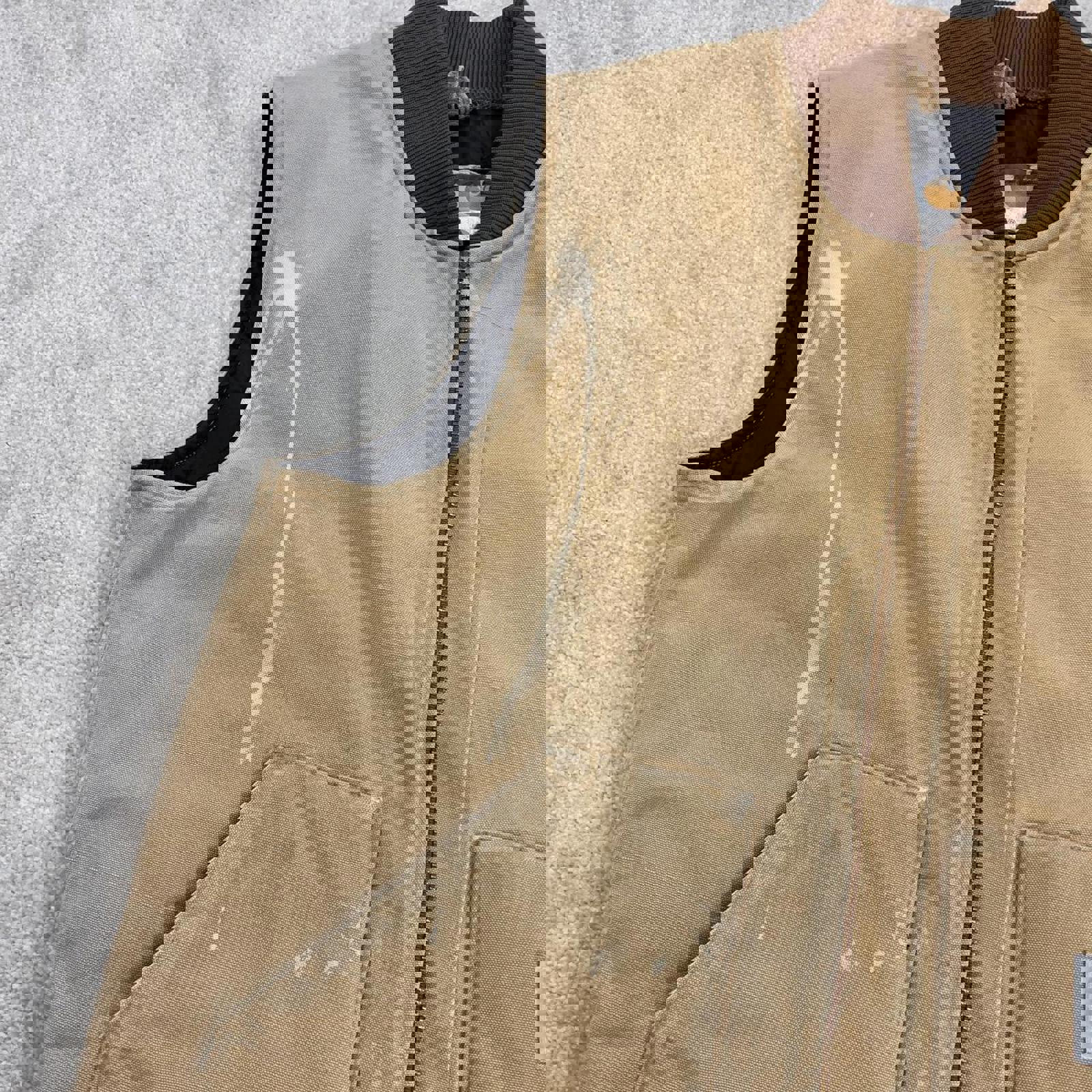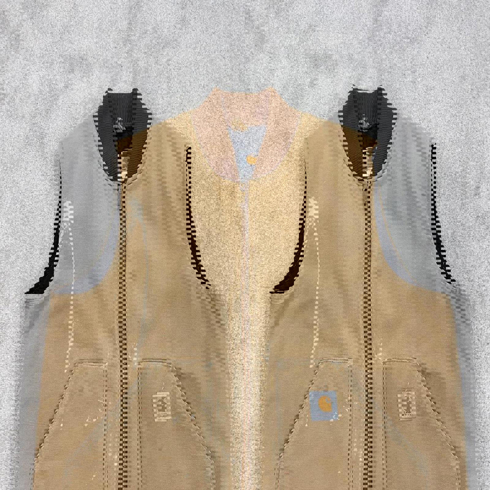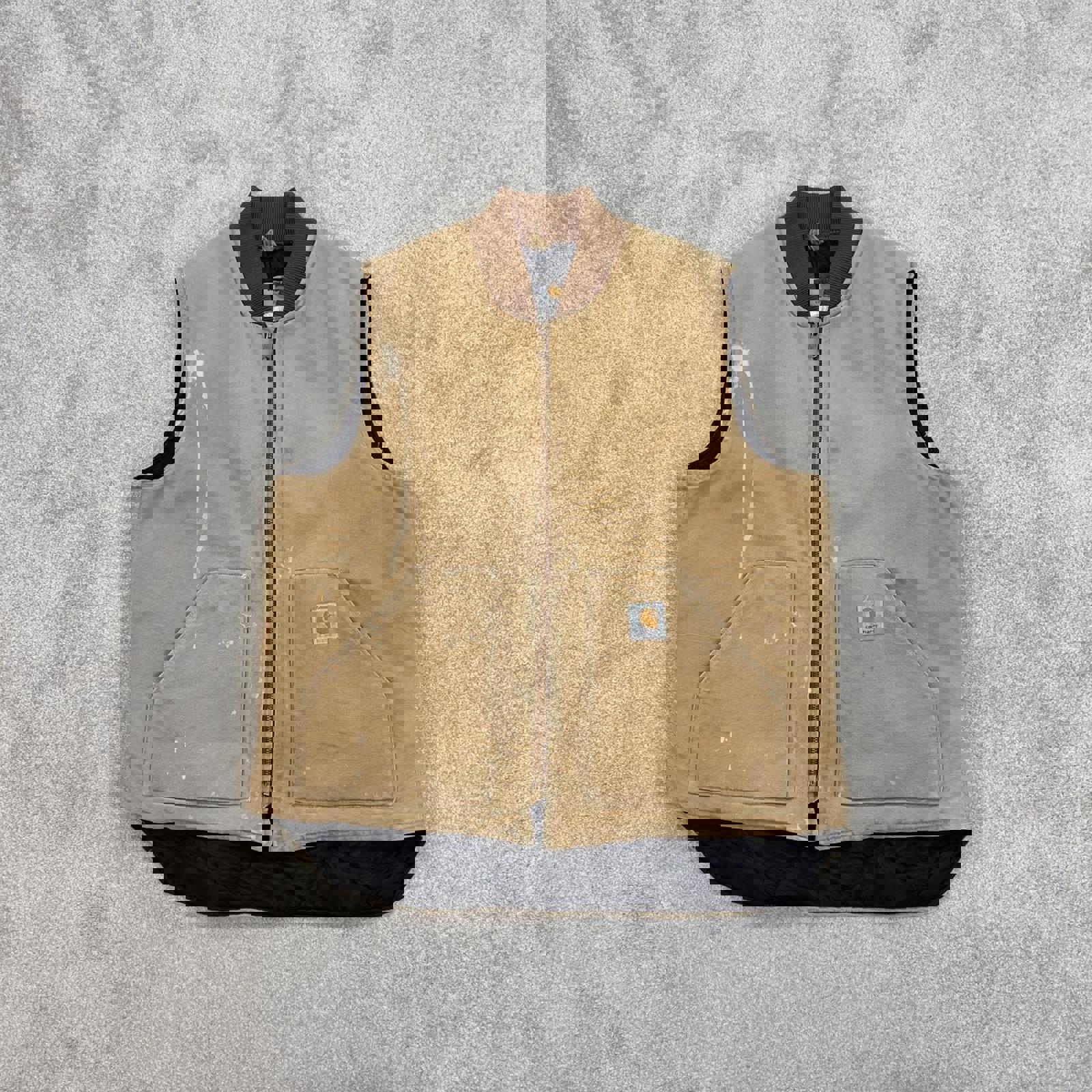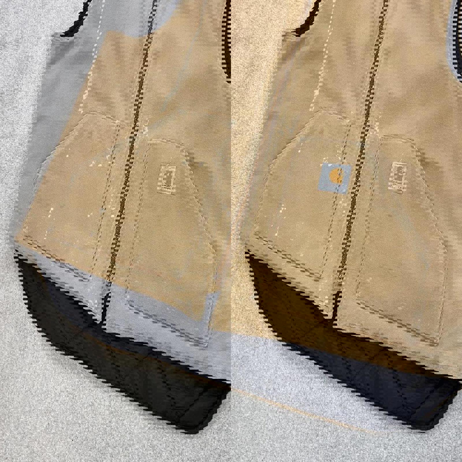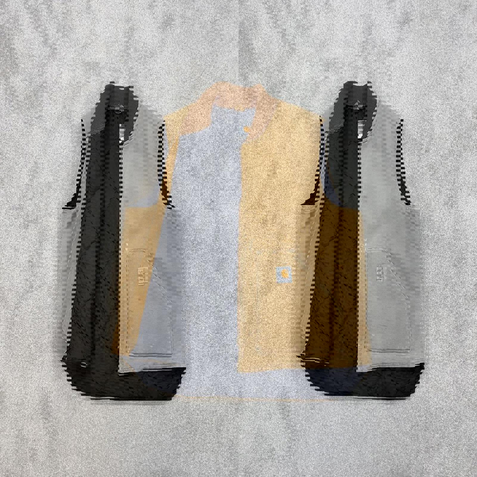 Authentic Carhartt body warmer with faded leather patch logo