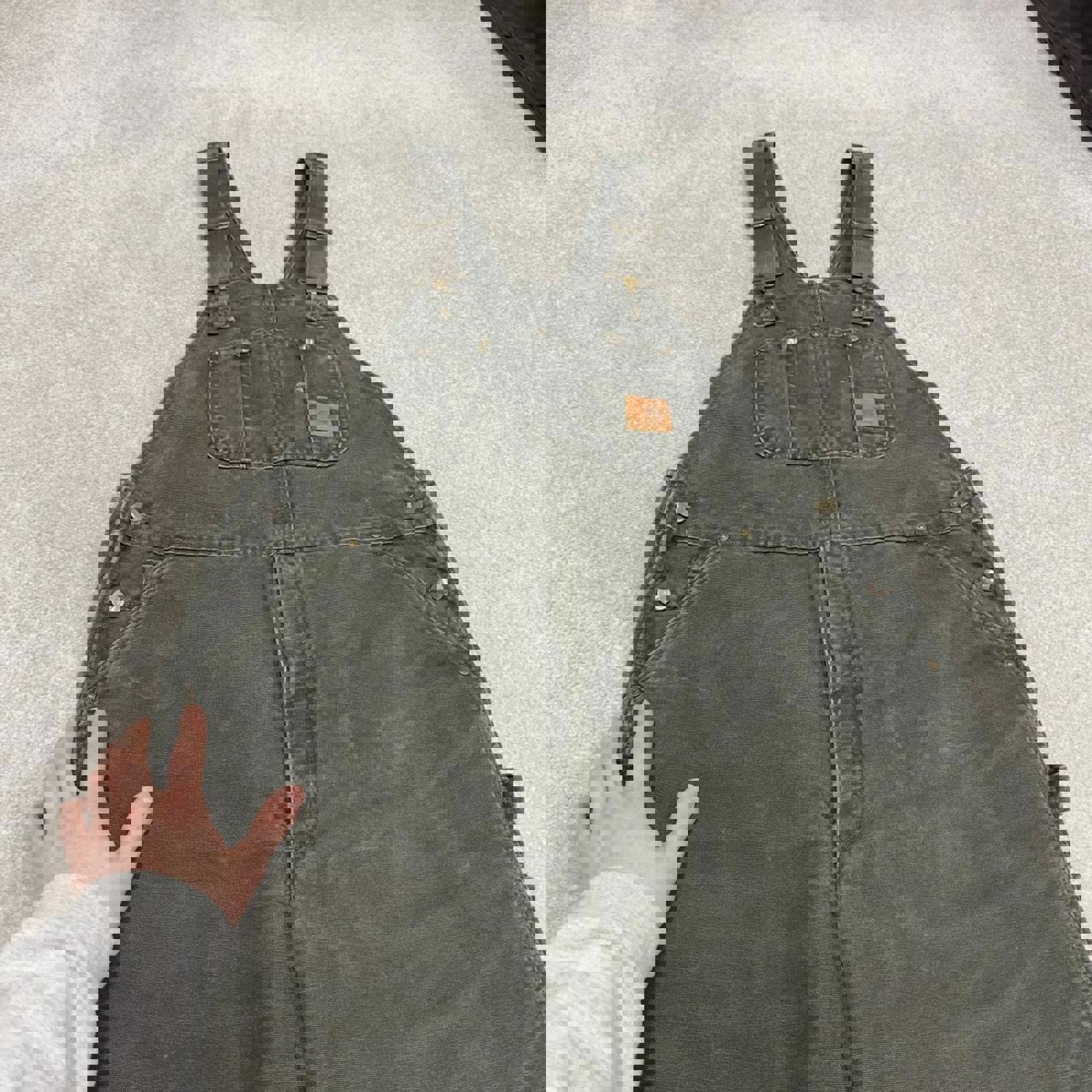 Vintage y2k baggy Carhartt dungarees wide leg green Canvas quilted bib & brace overalls workwear