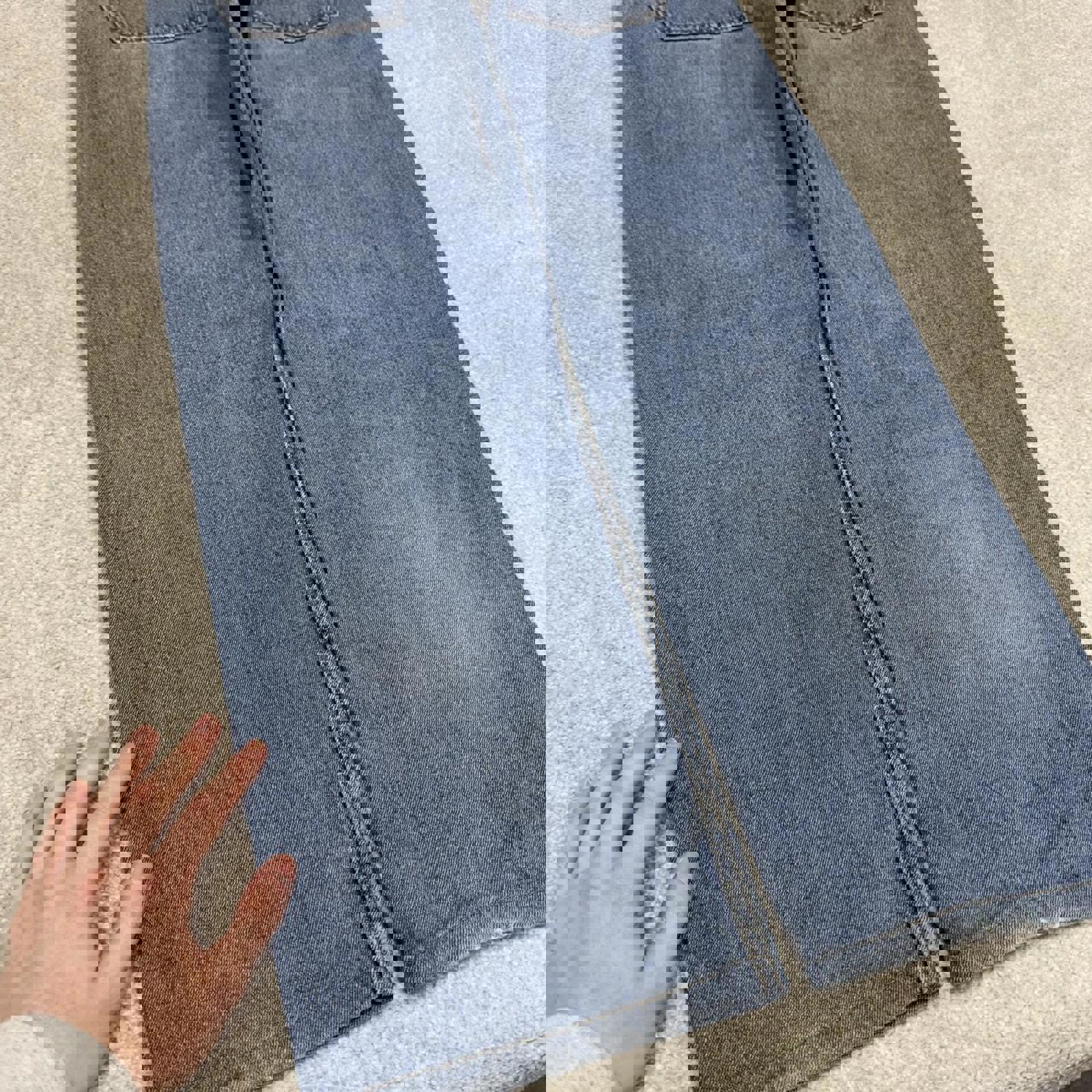 Condition: Good condition denim fading, faded marks and light wear.