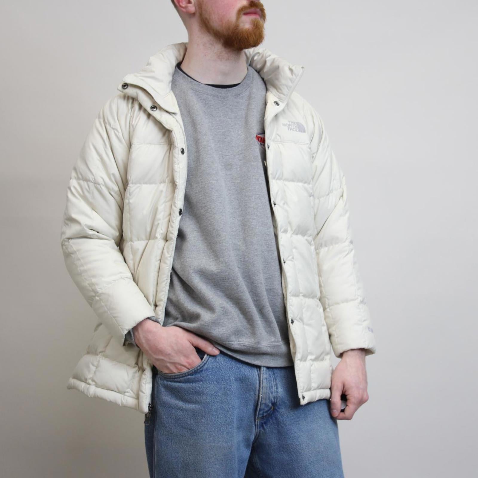 Women's North Face jacket M cream tnf 600 down hooded puffer coat