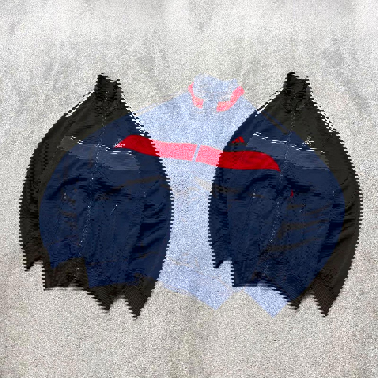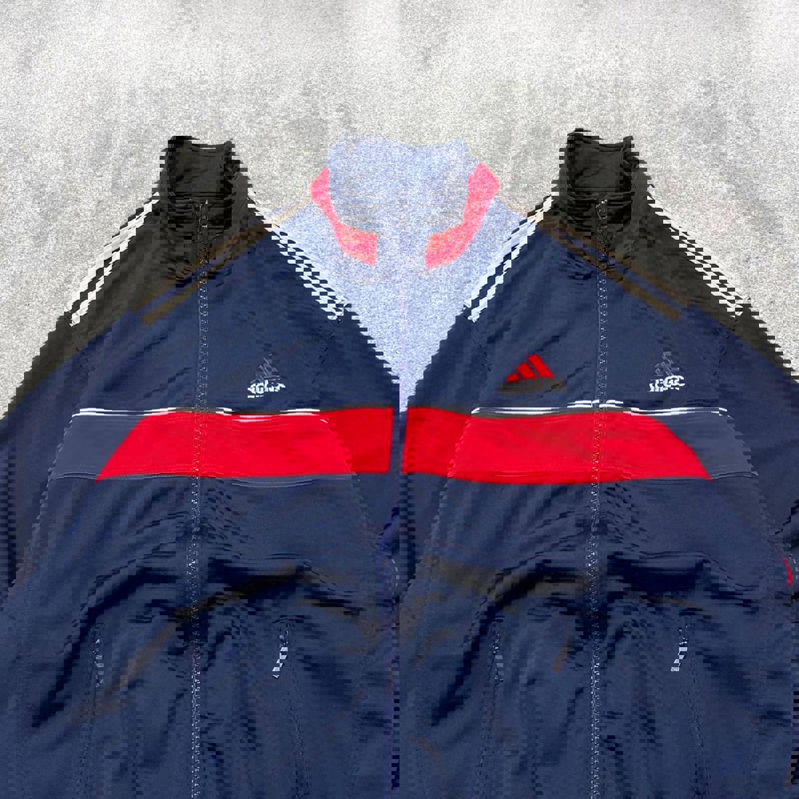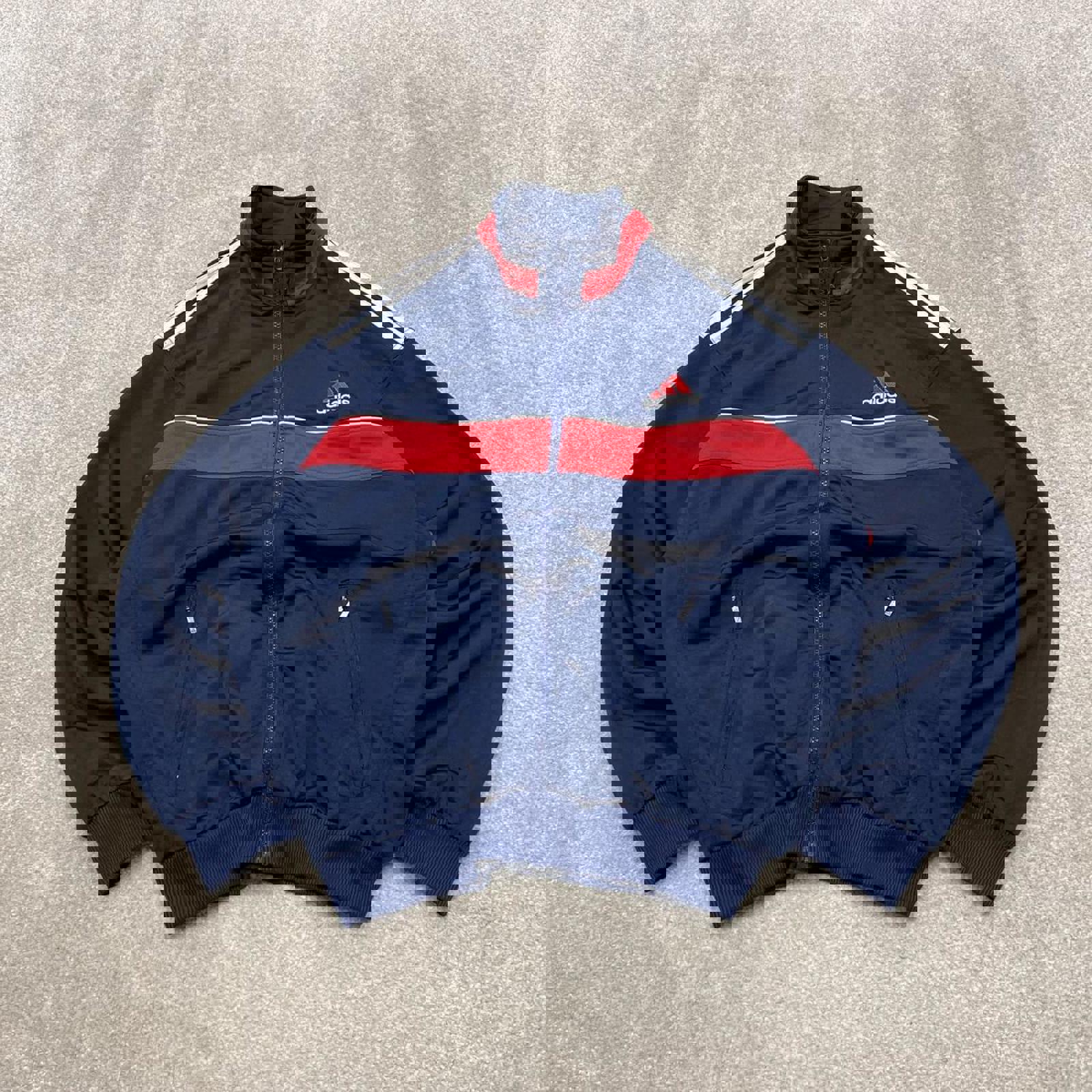 Y2k 00s Adidas track jacket y2k style XL men's blue full zip track suit top embroidered technical