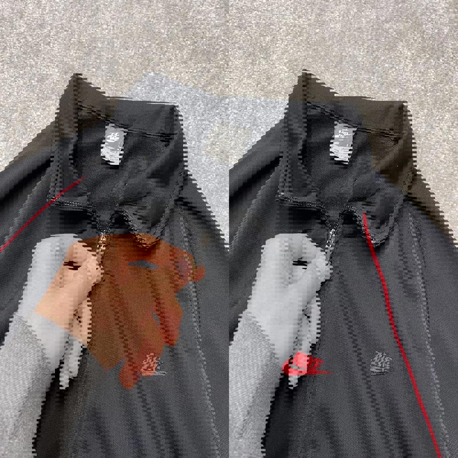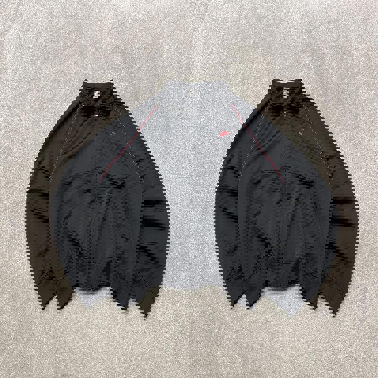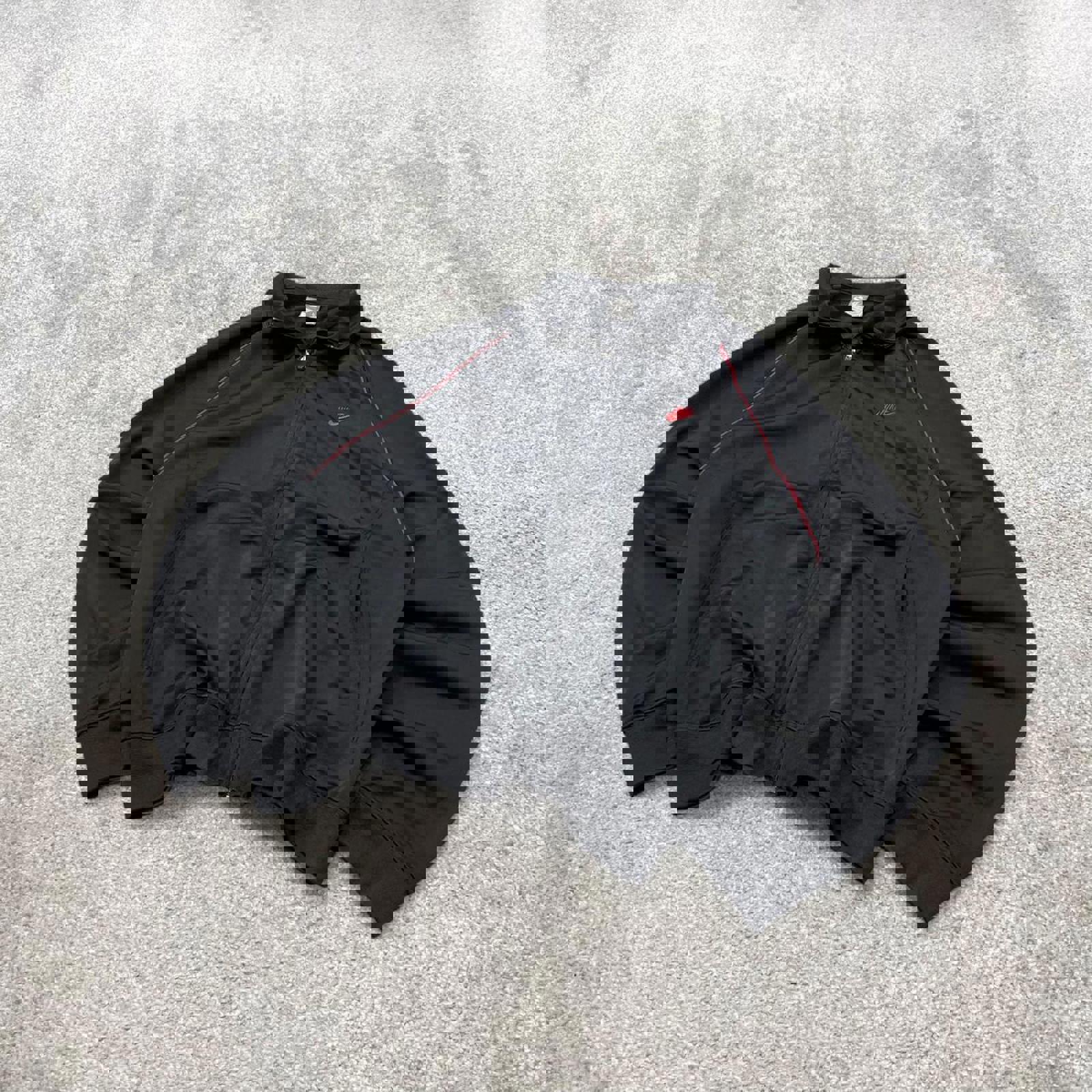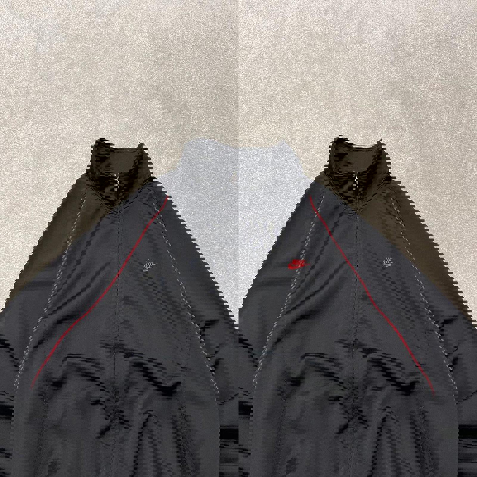 Y2k 00s Nike track jacket Large men's black full zip track suit top embroidered swoosh logo