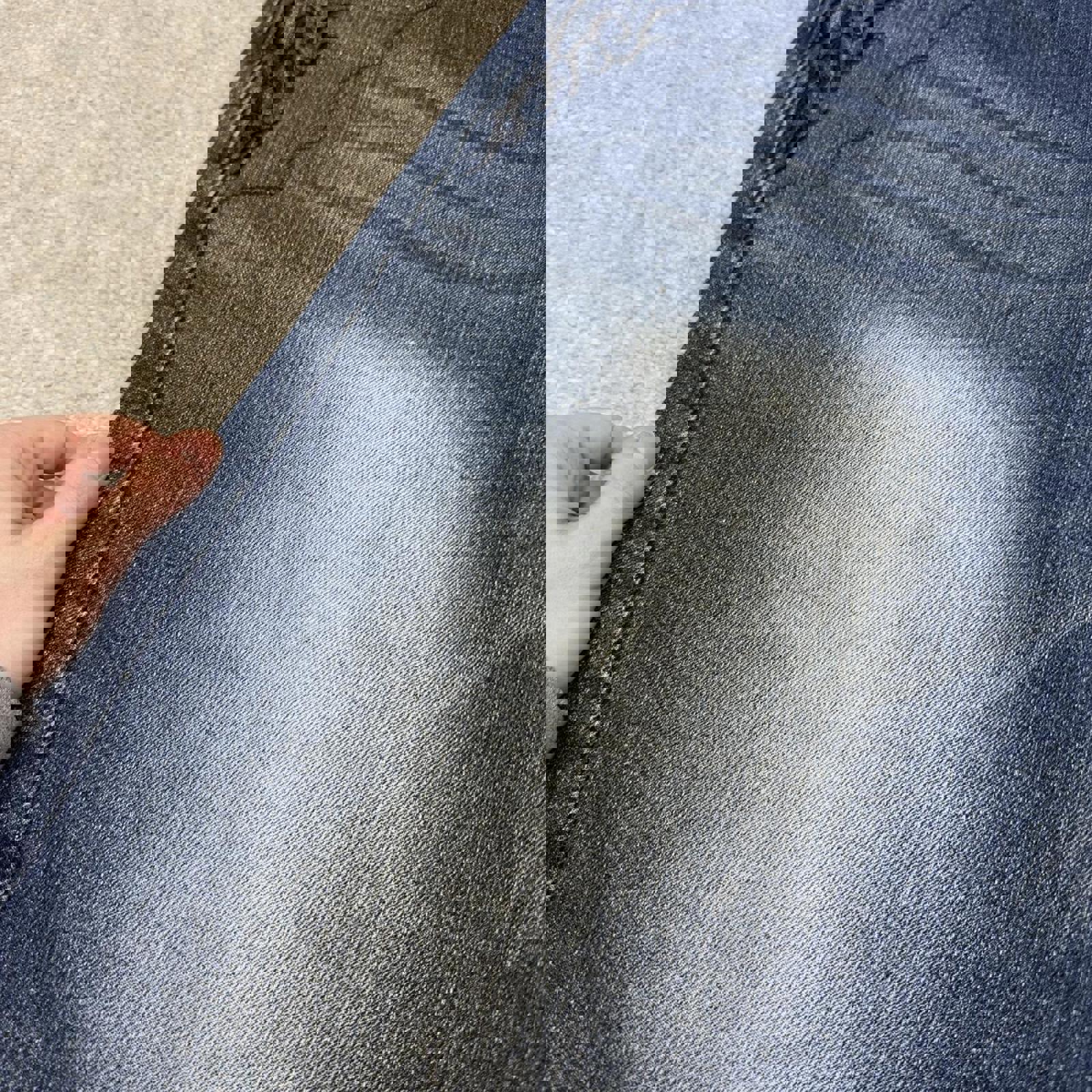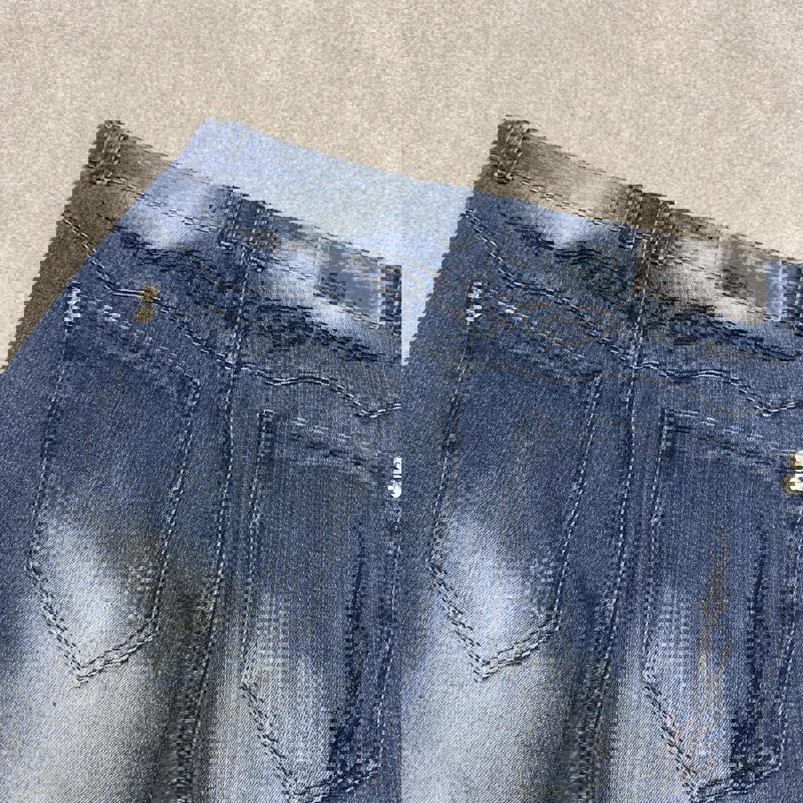 Condition: Good condition overall with slight denim fading and a few faded marks