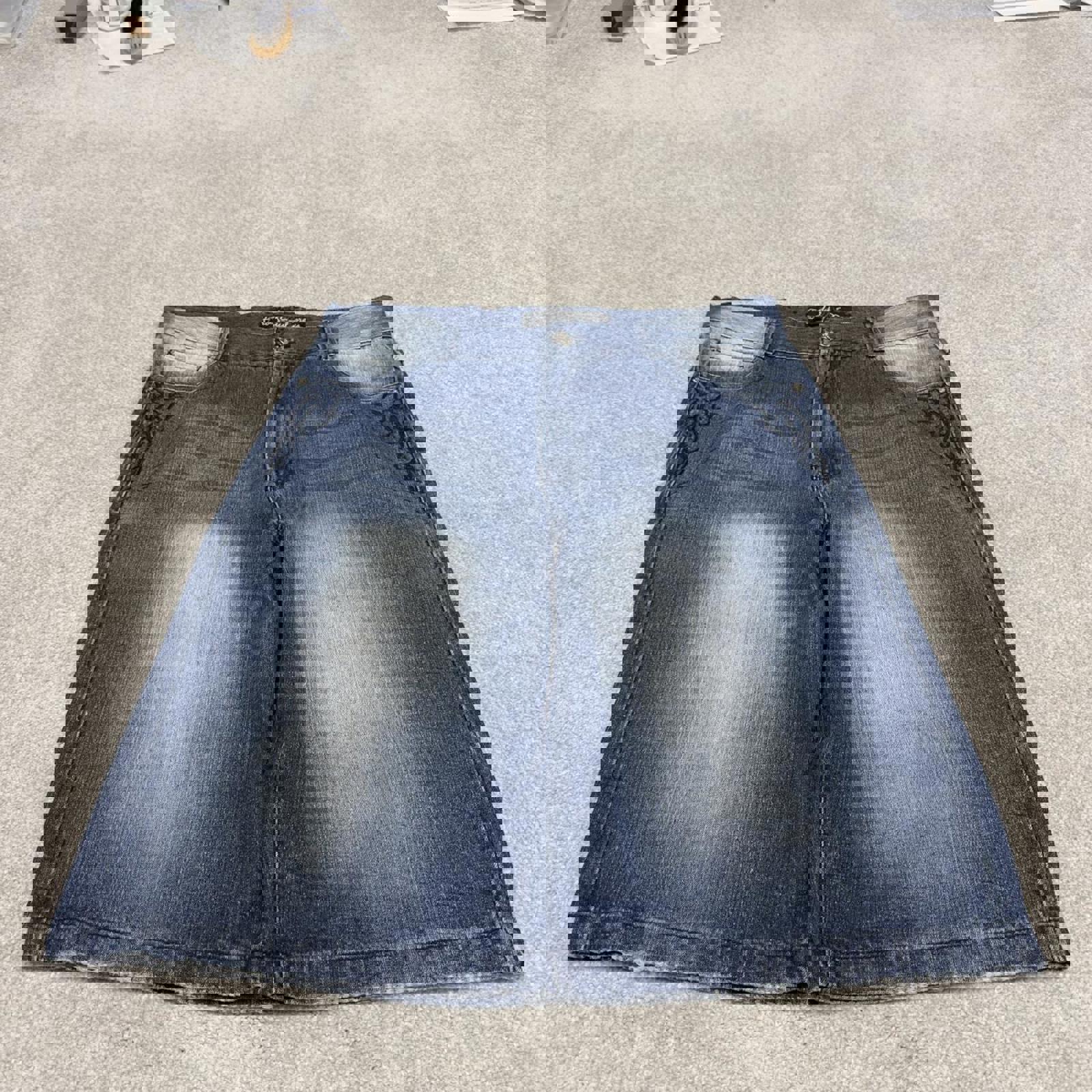 Y2k baggy denim shorts skater style blue Loose Brooklyn Xpress wide leg summer festival shorts