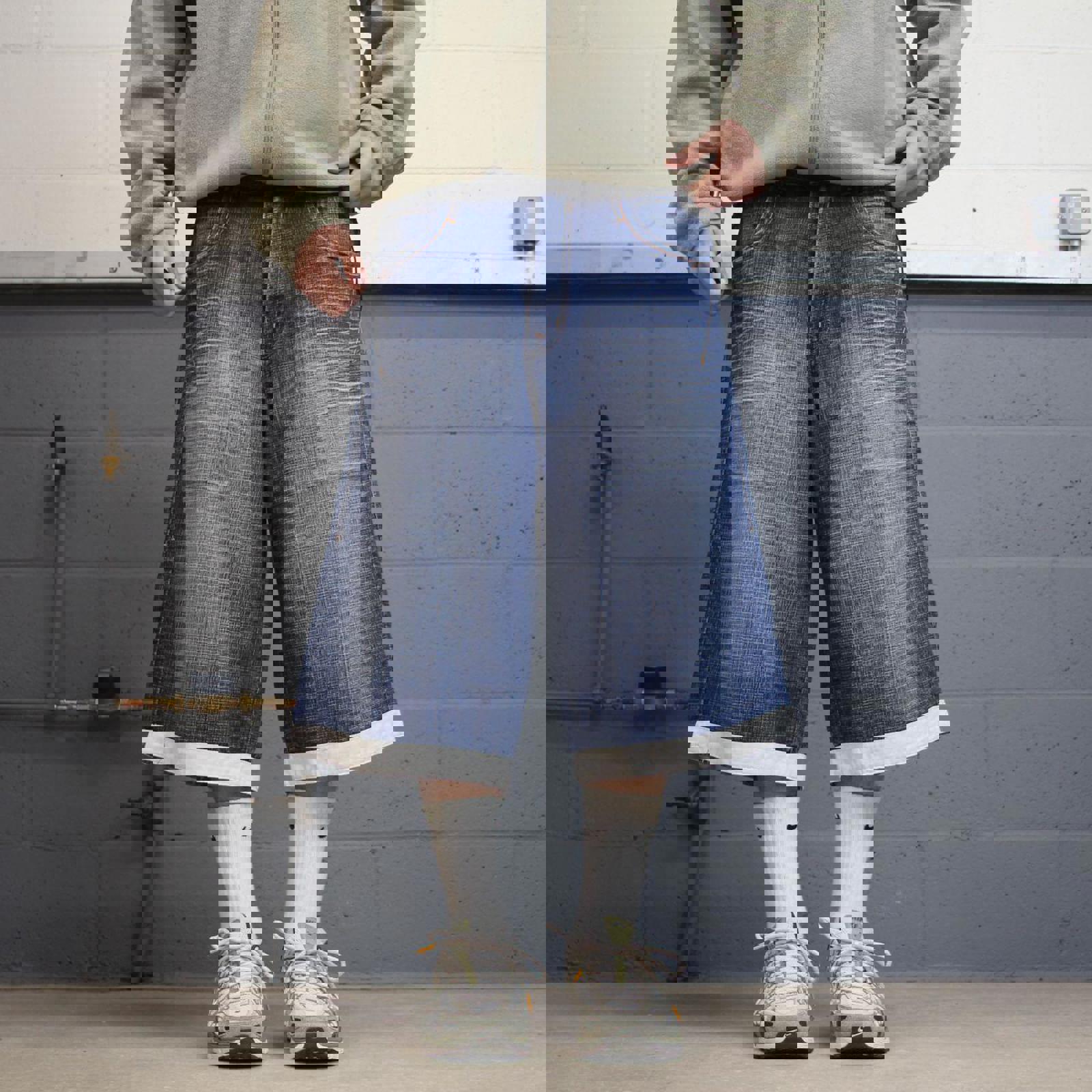 Y2k baggy shorts skater style blue Long wide leg Source Jeans denim summer festival jorts