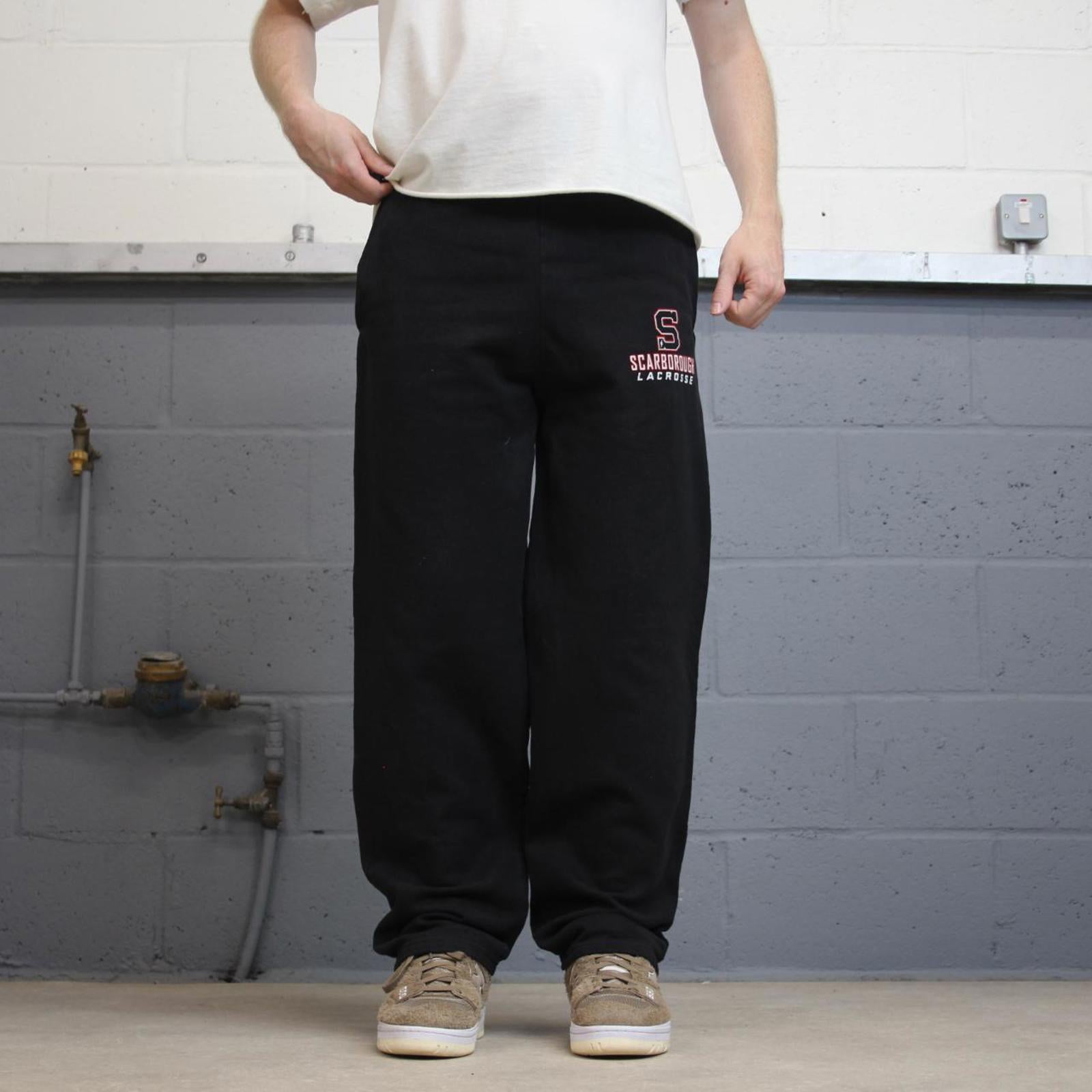 Black Champion track pants with pockets, embroidered logo and Lacrosse print