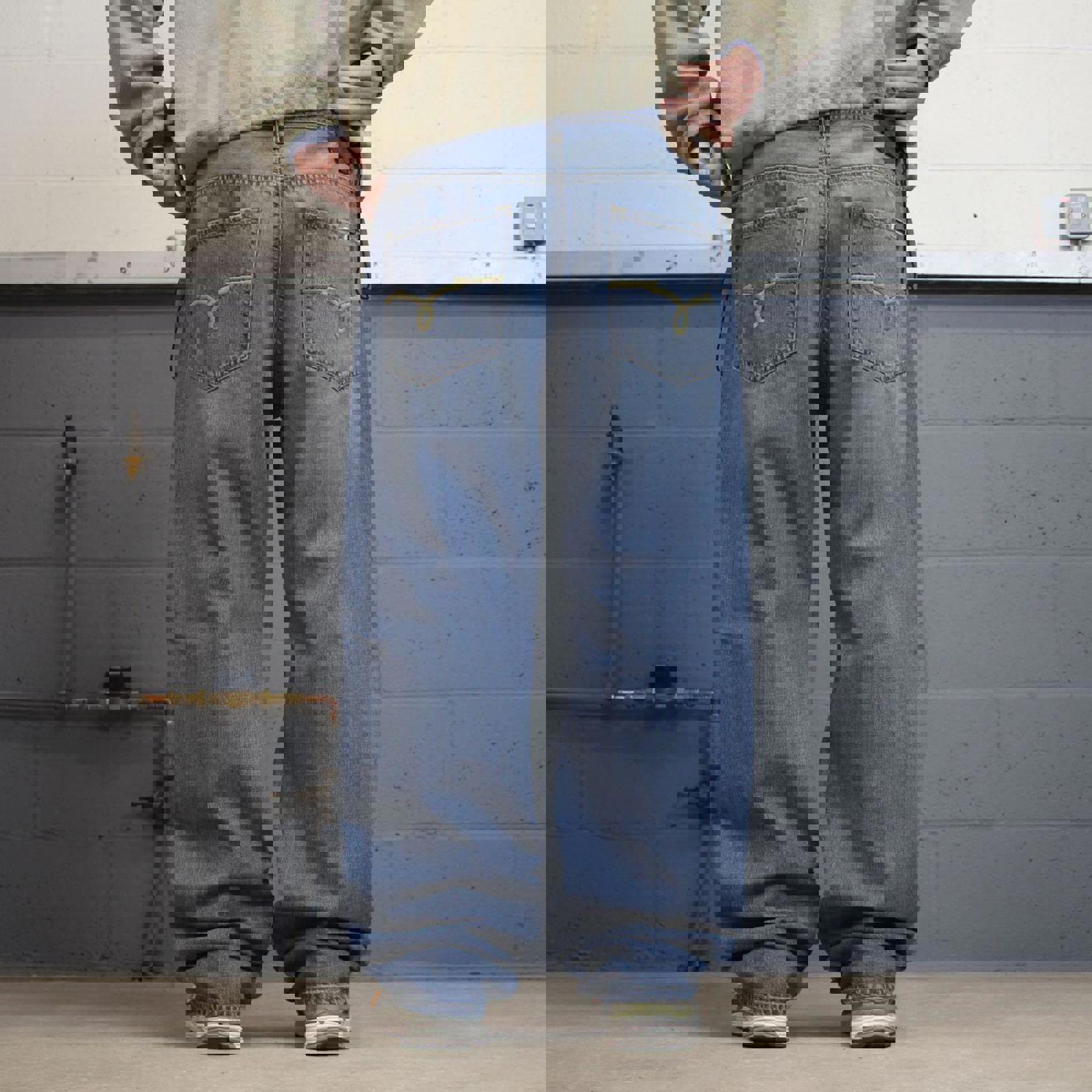 Blue loose Ecko jeans with waist patch and rear pocket designs