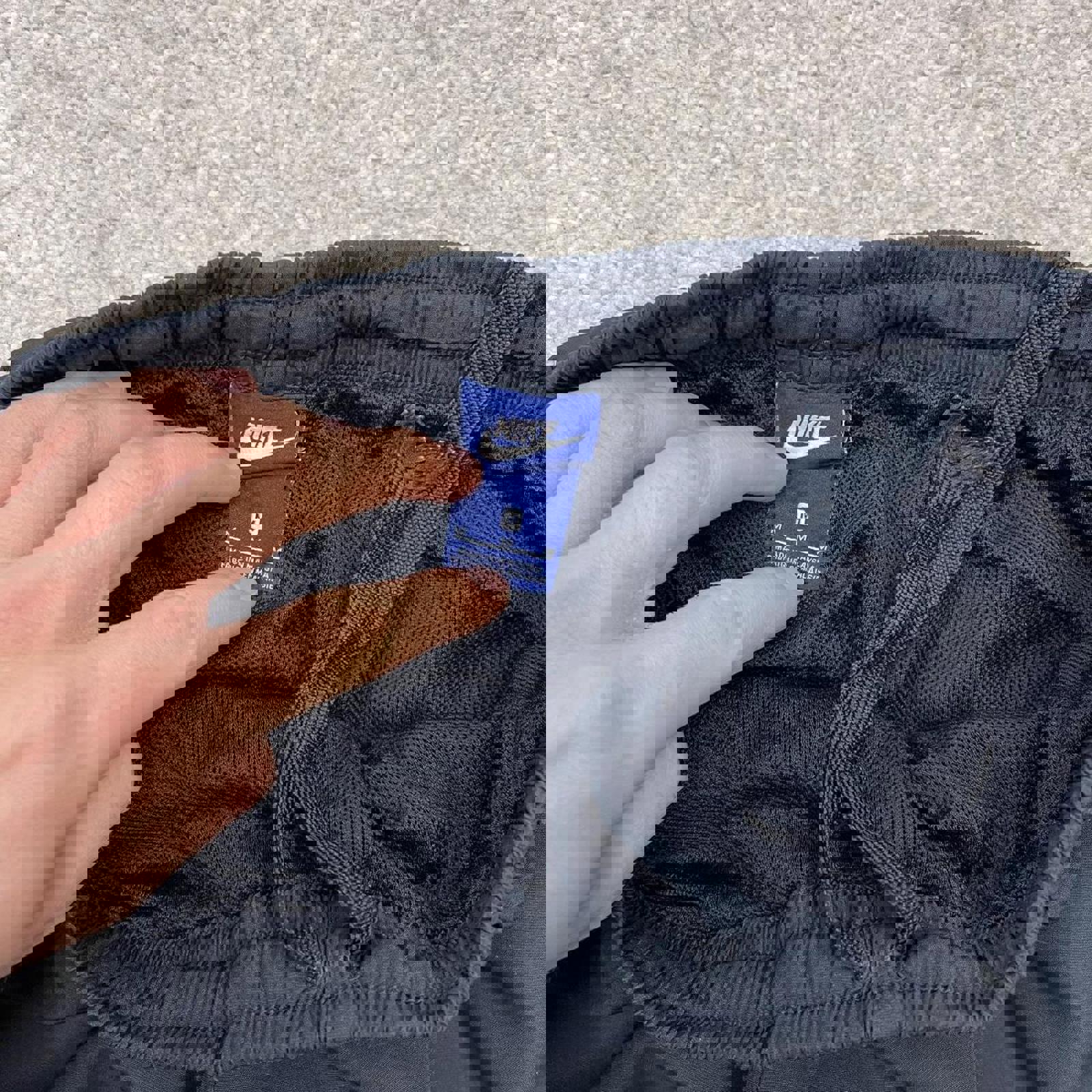 Y2k loose Nike tracksuit bottoms navy Loose lined embroidered track pants